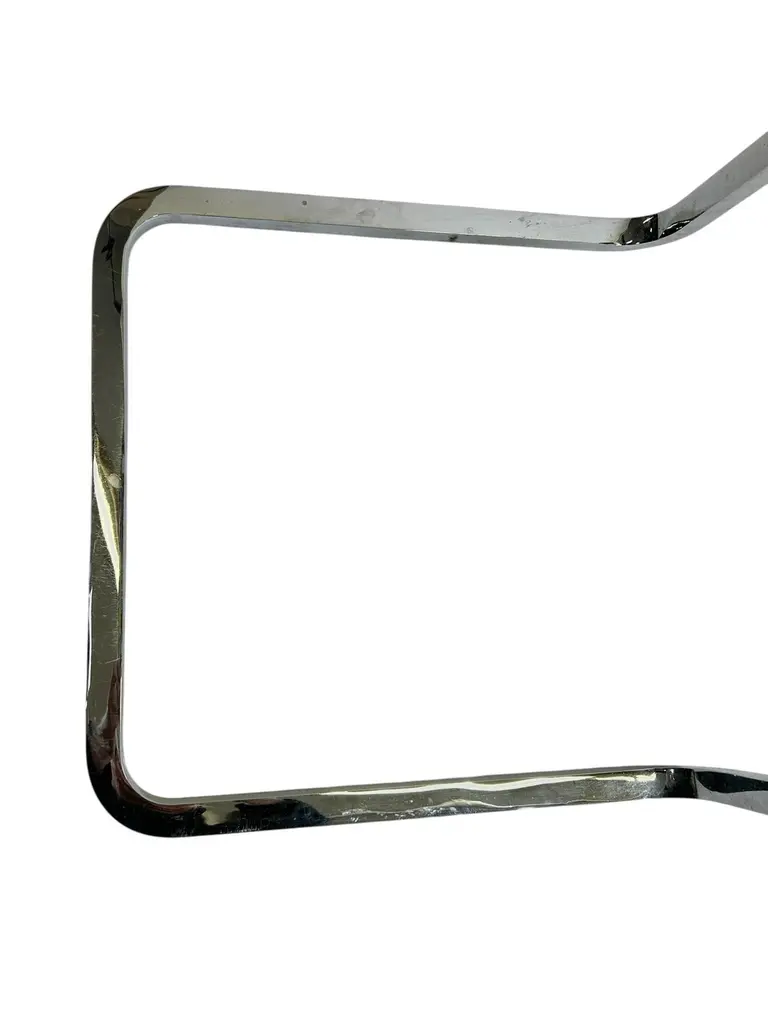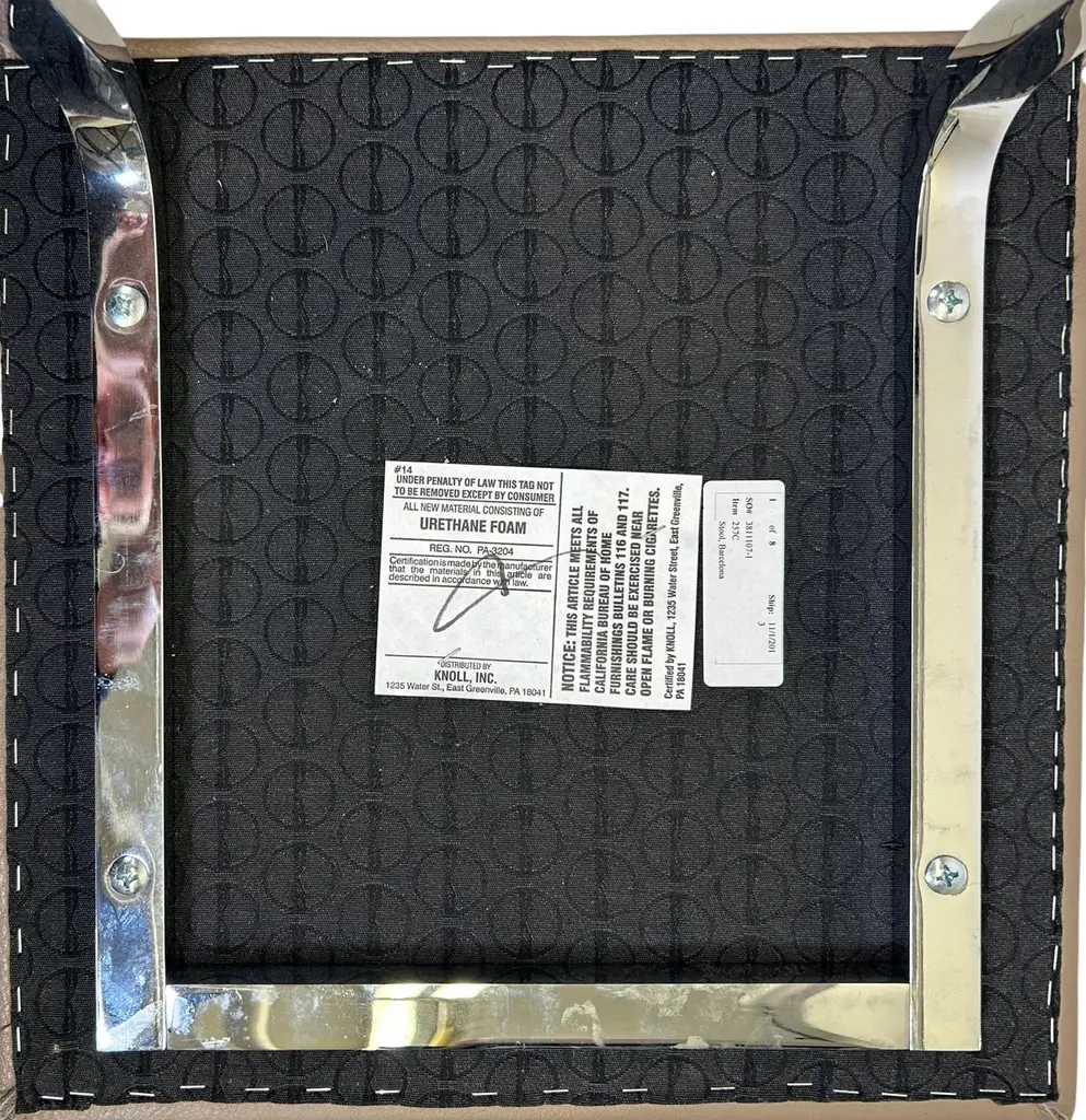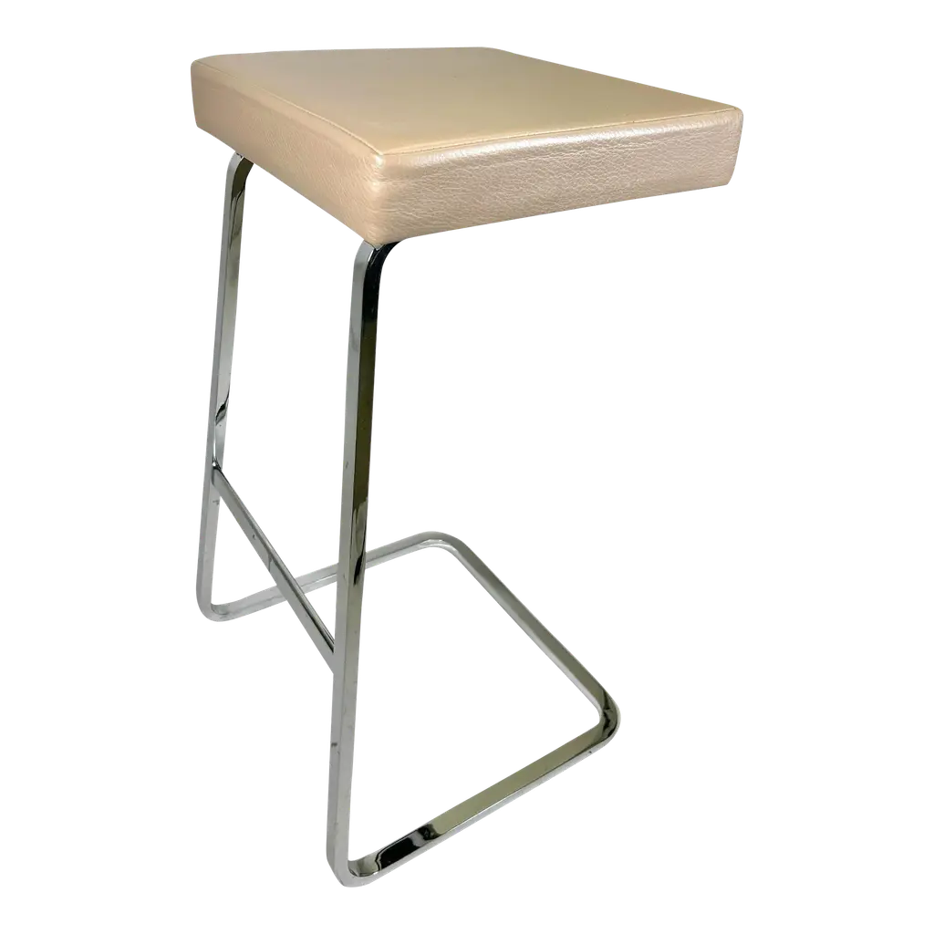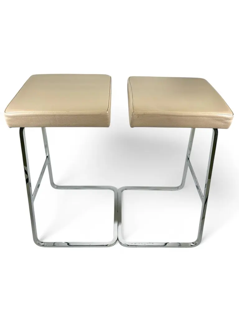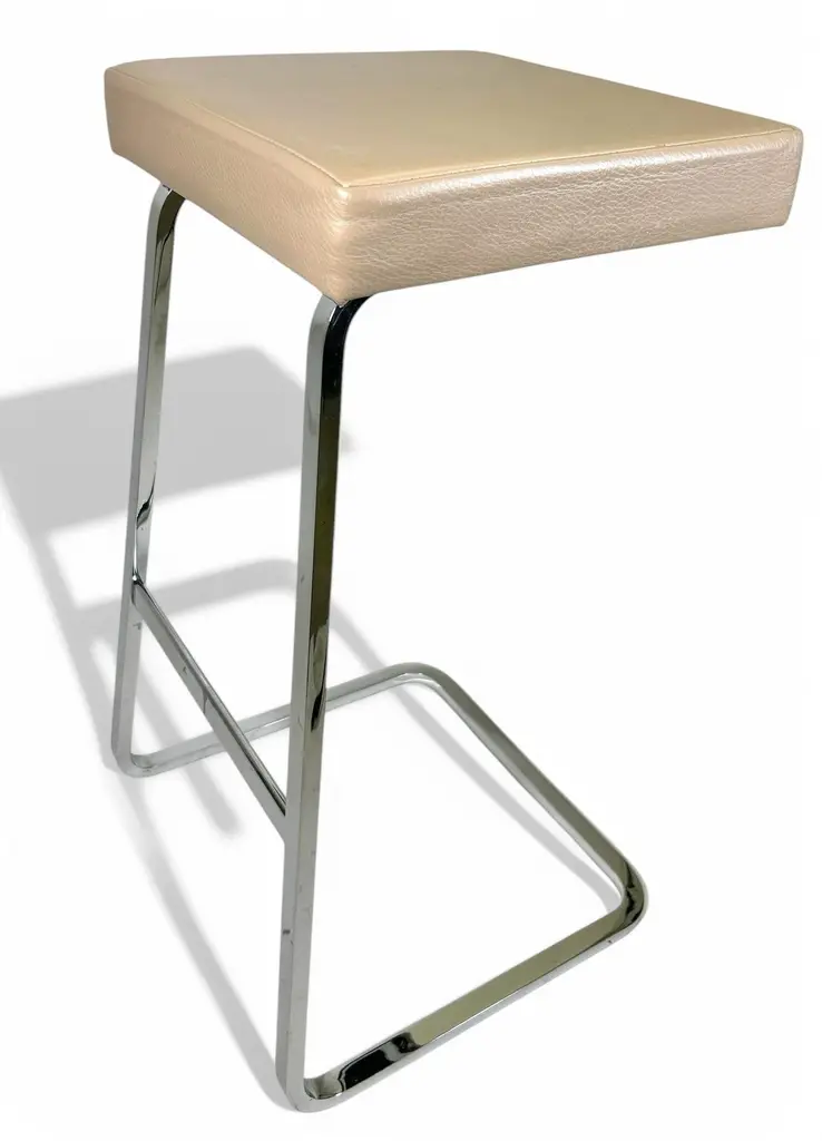 Design Ludwig Mies van der Rohe, 1958 for The Four Seasons Hotel in NYC. As a leading Modernist architect and furniture designer, Mies van der Rohe elevated industrial age materials to an art form. The elegant Four Seasons barstool, conceived in 1958 for the Four Seasons Restaurant in New York designed by Philip Johnson, was never mass produced. The classic barstool reflects Mies's signature spareness and features a lean profile, clean lines and meticulous craftsmanship. The bar height stool sports an upholstered seat with a hand buffed polished chrome frame. Knoll is the only authorized and licensed manufacturer of the Van der Rohe collection. Mies van der Rohe's signature is stamped into the frame of each piece to guarantee authenticity.