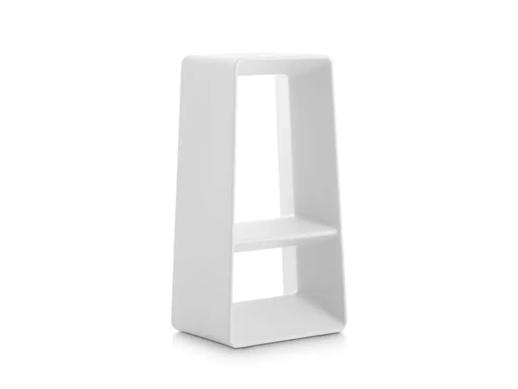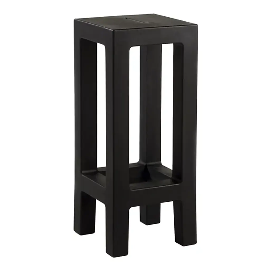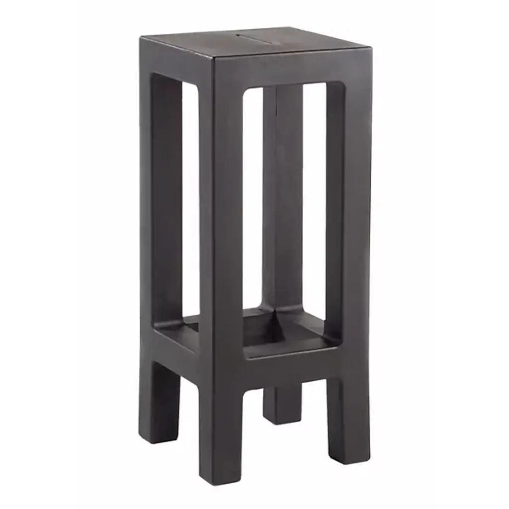 The bare framework of a building and frame around a picture inspired the elementary geometry of the Vondom Frame Bar Stool. On either side, the legs and seat are beveled, drawing the eye toward the rectangular void in the middle. The sharp lines of the stool were made possible by precisely rotation molding smooth and durable polyethylene.