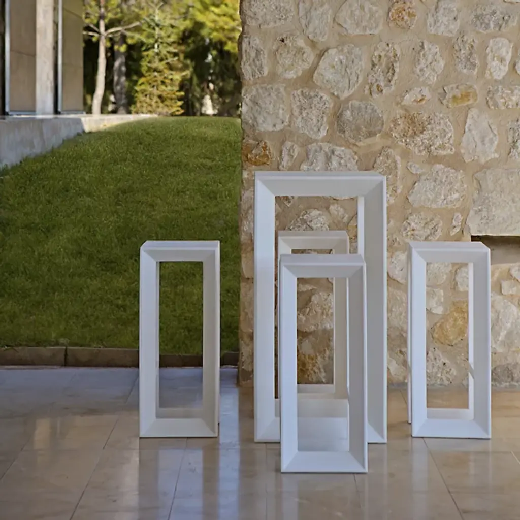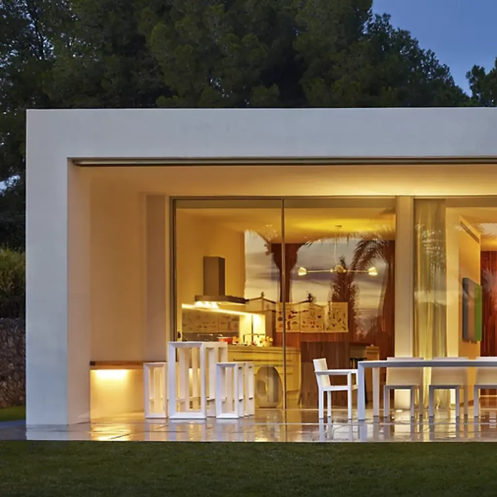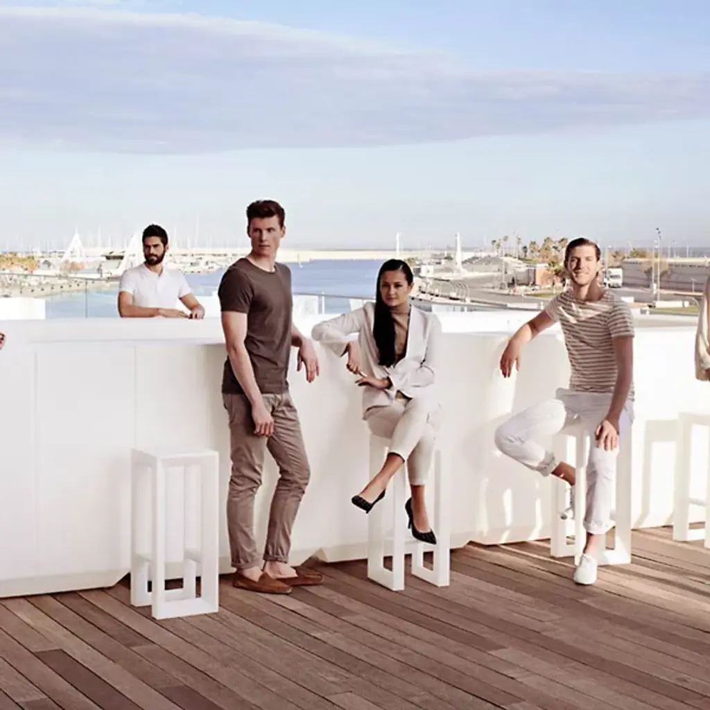 The bare framework of a building and frame around a picture inspired the elementary geometry of the Vondom Frame Bar Stool. On either side, the legs and seat are beveled, drawing the eye toward the rectangular void in the middle. The sharp lines of the stool were made possible by precisely rotation molding smooth and durable polyethylene.