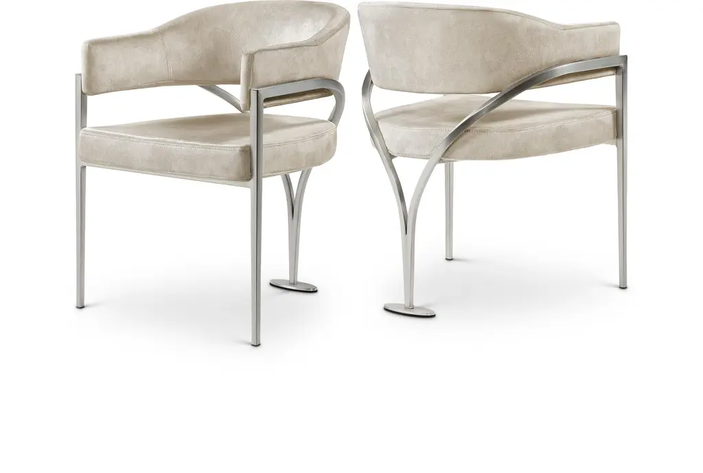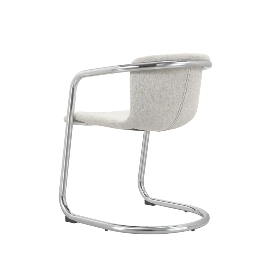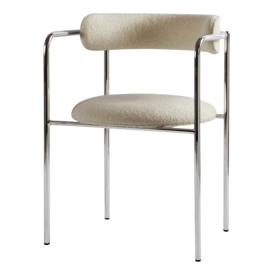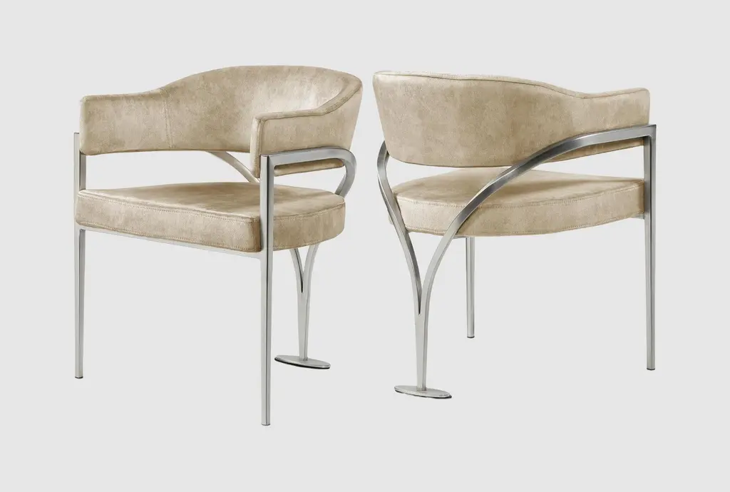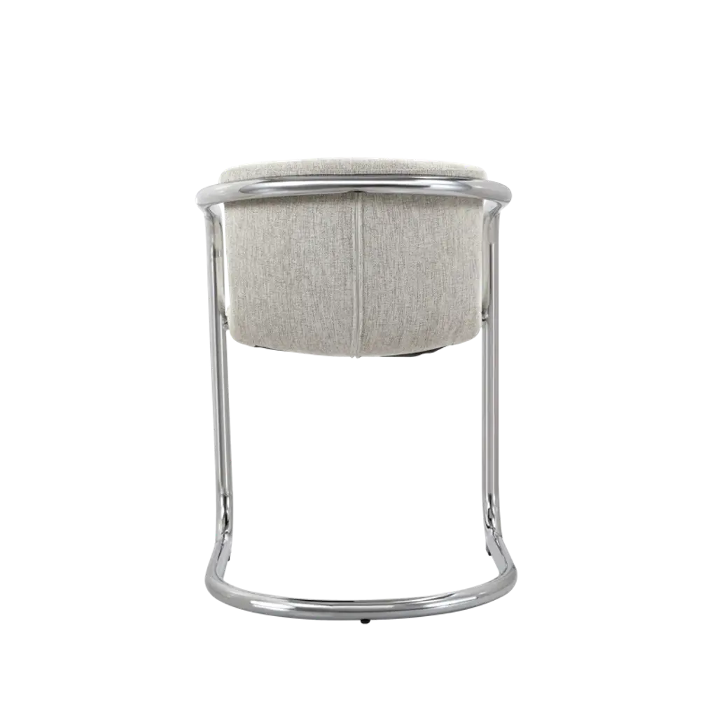 Modern mixed materials. These 2-piece dining armchairs bring a modern industrial flair to your dining space. Each chair features a comfortable, curved silhouette with rustic polyester upholstery, promoting ergonomic comfort. The sleek chrome iron frame adds a touch of sophistication while ensuring stability. We love that the foam cushioning provides a cozy seating experience, making it perfect for long conversations over dinner. With their stylish design and practical functionality, these armchairs are a smart addition to any contemporary dining area. Each has a weight capacity of 265 lbs.