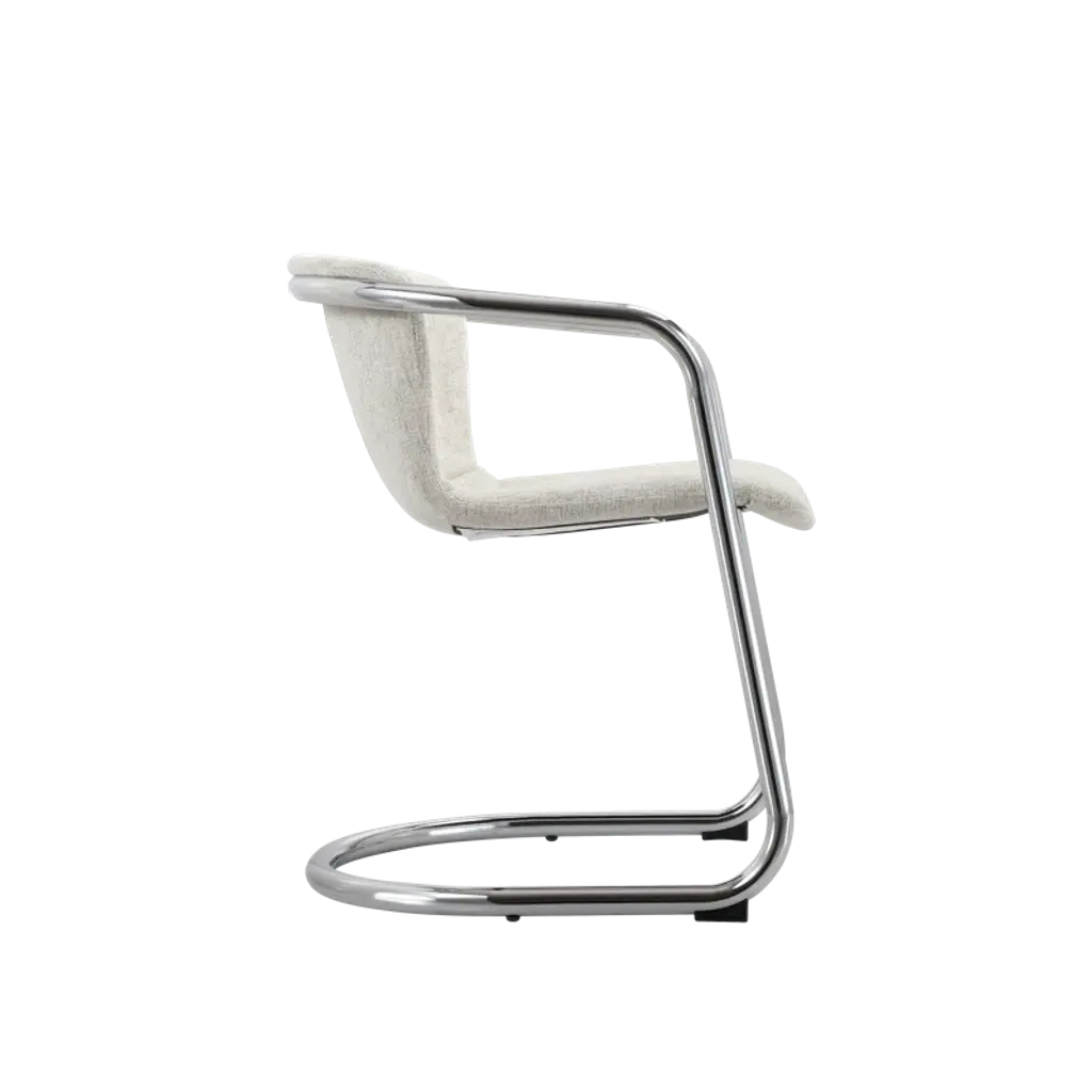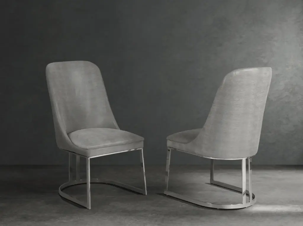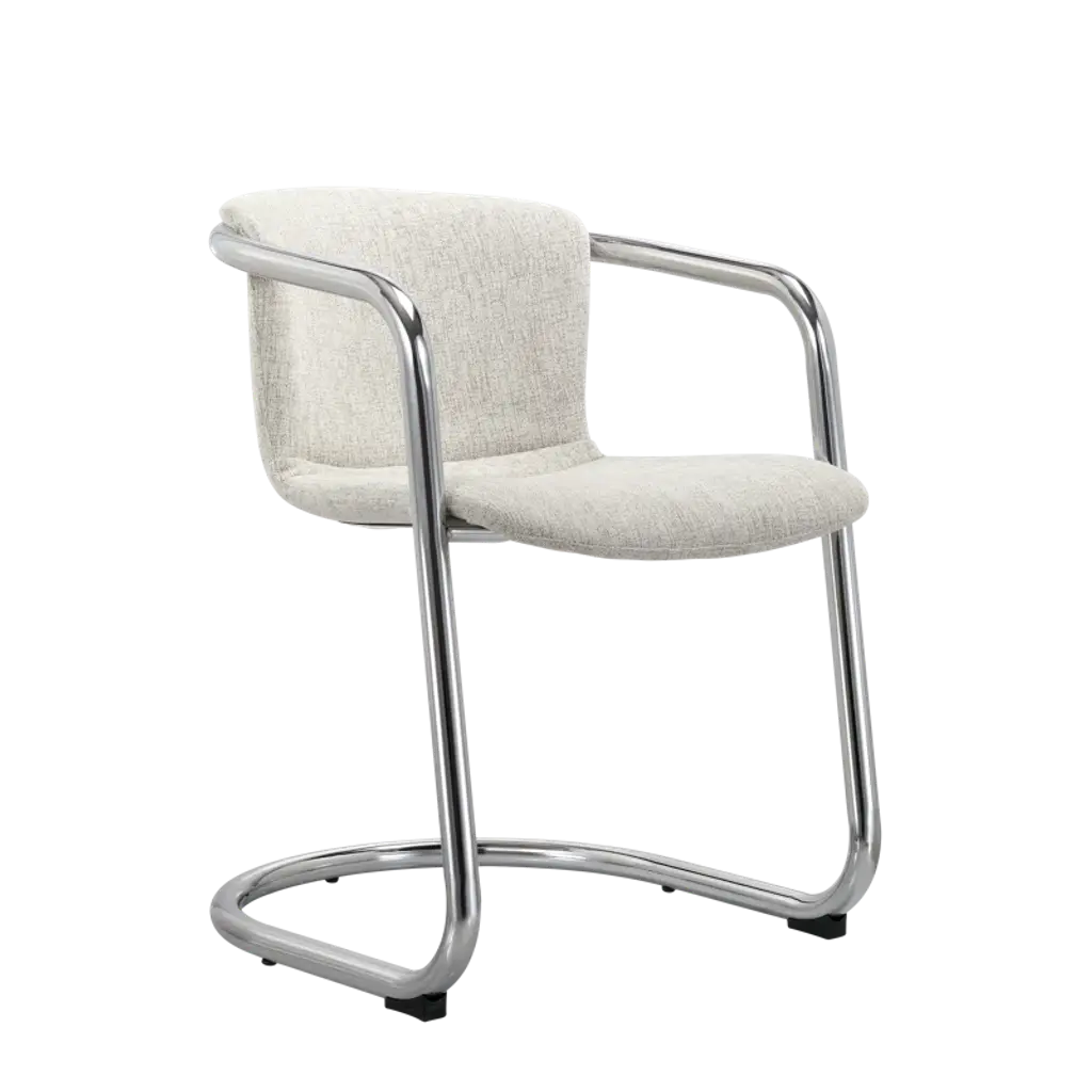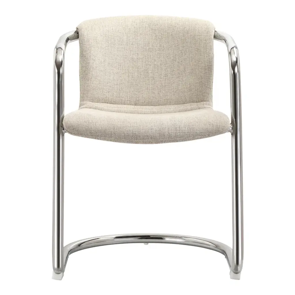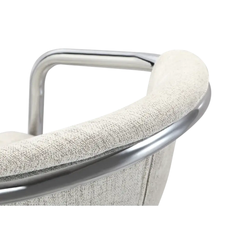 Modern mixed materials. These 2-piece dining armchairs bring a modern industrial flair to your dining space. Each chair features a comfortable, curved silhouette with rustic polyester upholstery, promoting ergonomic comfort. The sleek chrome iron frame adds a touch of sophistication while ensuring stability. We love that the foam cushioning provides a cozy seating experience, making it perfect for long conversations over dinner. With their stylish design and practical functionality, these armchairs are a smart addition to any contemporary dining area. Each has a weight capacity of 265 lbs.