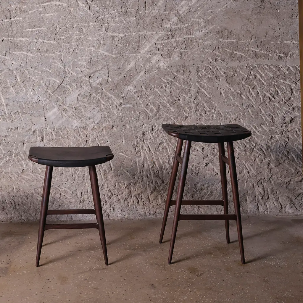 Space Copenhagen’s designers imbued Freja with natural appeal of Scandi style as well as a nod to Japanese forms. The solid-wood bar stool comes crafted in either dark walnut or varied ash finishes. It’s completed with a sculptural seat in a choice of solid leather or woven leather coverings.