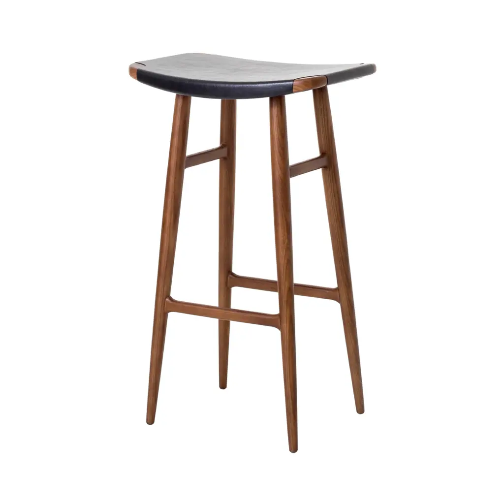 Space Copenhagen’s designers imbued Freja with natural appeal of Scandi style as well as a nod to Japanese forms. The solid-wood bar stool comes crafted in either dark walnut or varied ash finishes. It’s completed with a sculptural seat in a choice of solid leather or woven leather coverings.