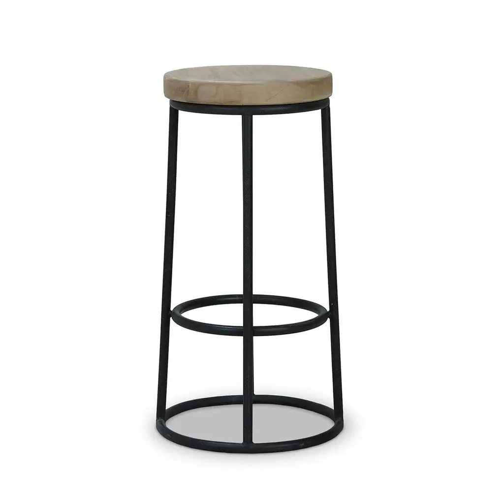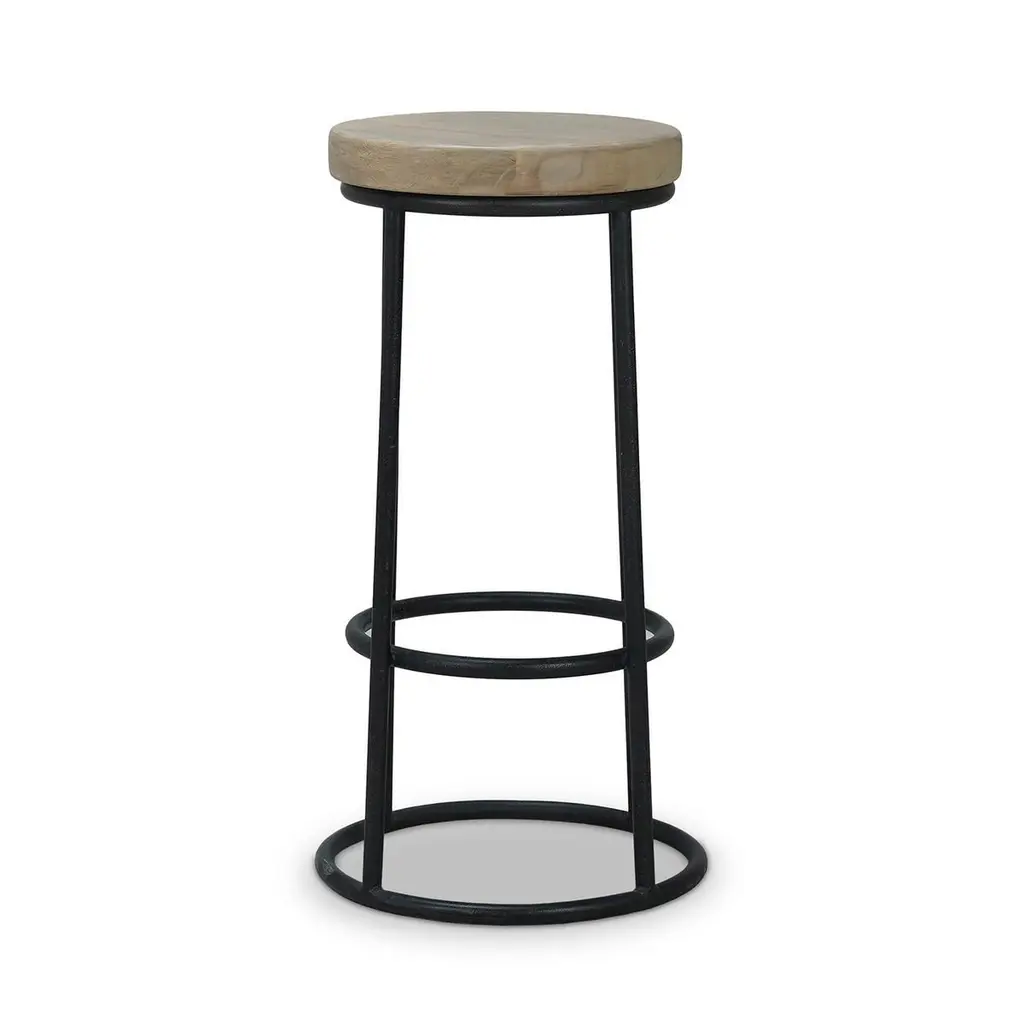 A perfect blend of rustic charm and modern design. This sleek bar stool features a sturdy base with our Midnight black finish, providing both durability and a contemporary look. The round wooden seat, crafted from solid wood with our natural Gamalina finish, adds a touch of warmth and elegance, making it an ideal addition to any kitchen, bar, or dining area.The open frame design not only enhances its industrial aesthetic but also offers easy maneuverability. The footrest ring adds extra comfort, ensuring that this bar stool is as practical as it is stylish.Dimensions: 15" W x 15" D x 30" HCustom finish options are also available. Contact us to learn more.