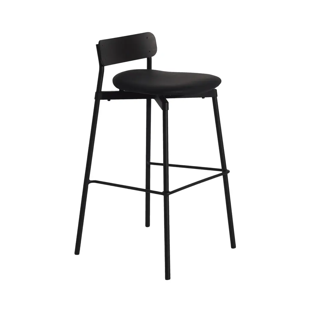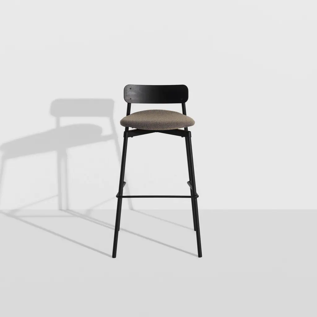 A barstool from designer Tom Chung’s minimalist Fromme range levels up with an upholstered seat in full-grain leather or a fine wool to complement the frame in beech plywood and aluminum. Pure of line and compact of footprint, its comfortability is further enhanced by the absorbers placed under the seat that yield a soft and pliant flexibility.
