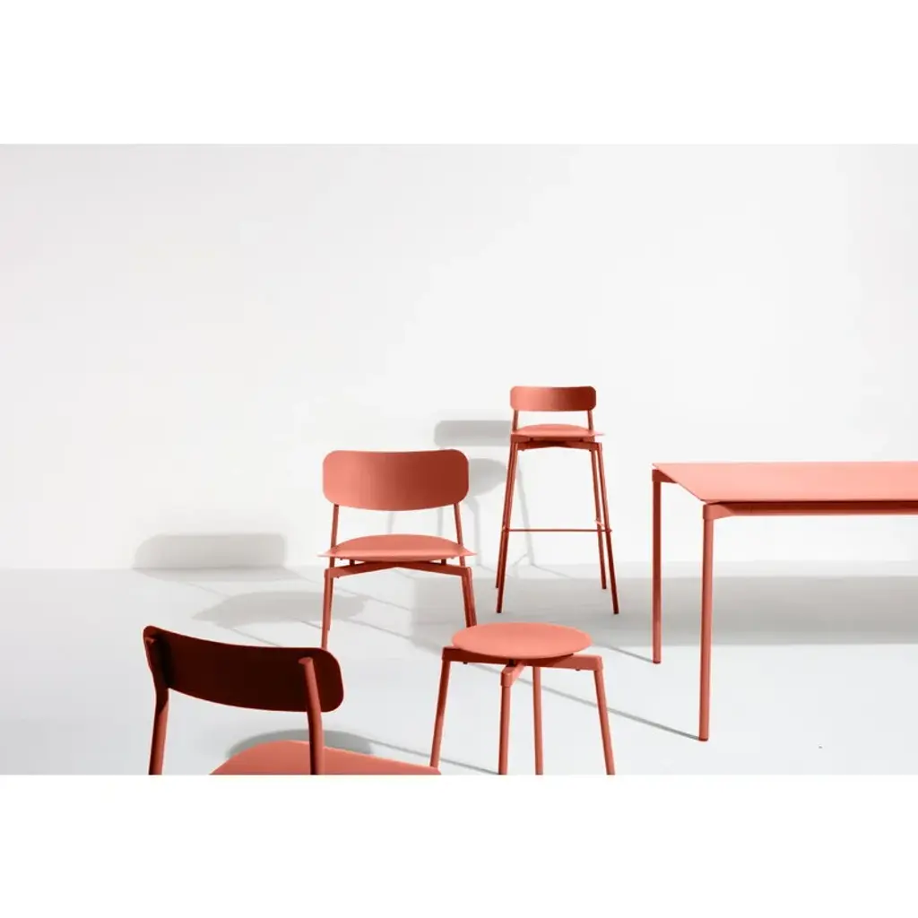 Petite Friture’s Fromme bar stool boasts simple, streamlined shapes and a slightly curved seat with integrated shock absorbers to maximize a soft and flexible feel. Made of matte-coated aluminum, the Fromme bar stool is designed for both outdoor and indoor use – it is equally ideal for a bar table at a patio or for a kitchen island indoors. Canadian designer and cycling enthusiast Tom Chung came up with the initial idea for the Fromme collection while cycling at Mount Fromme near Vancouver. Inspired by the technical features of his bike, he designed a collection featuring small shock absorbers under the seats and tabletops, as well as lightweight and durable cast aluminum tubes with weatherproof powder coating. The Fromme series is made using recyclable materials and UV-resistant coatings that don’t contain harmful VOCs.