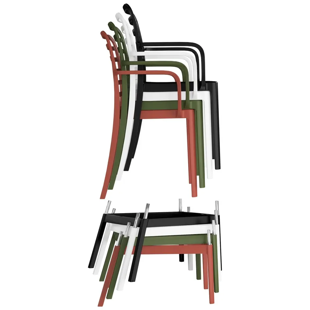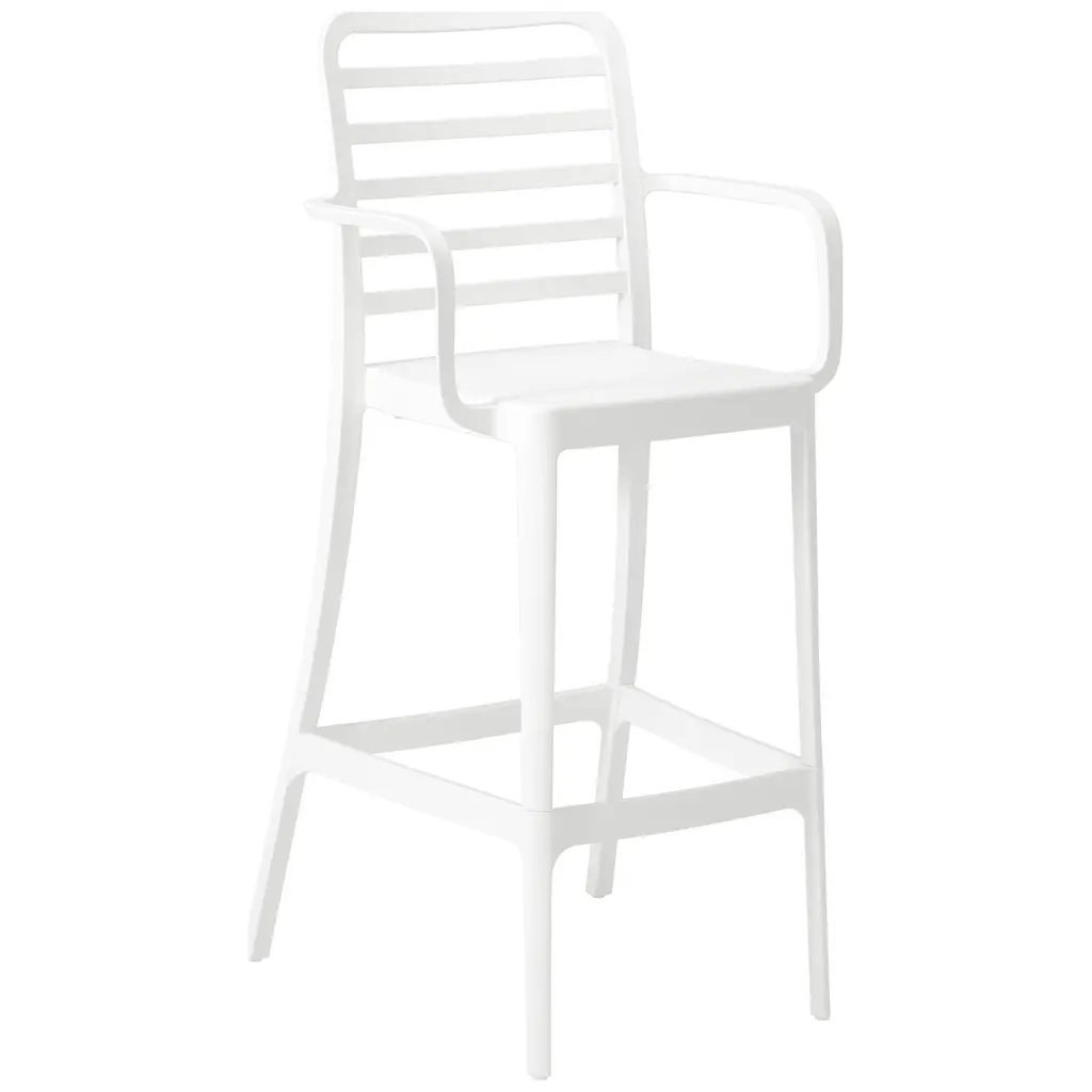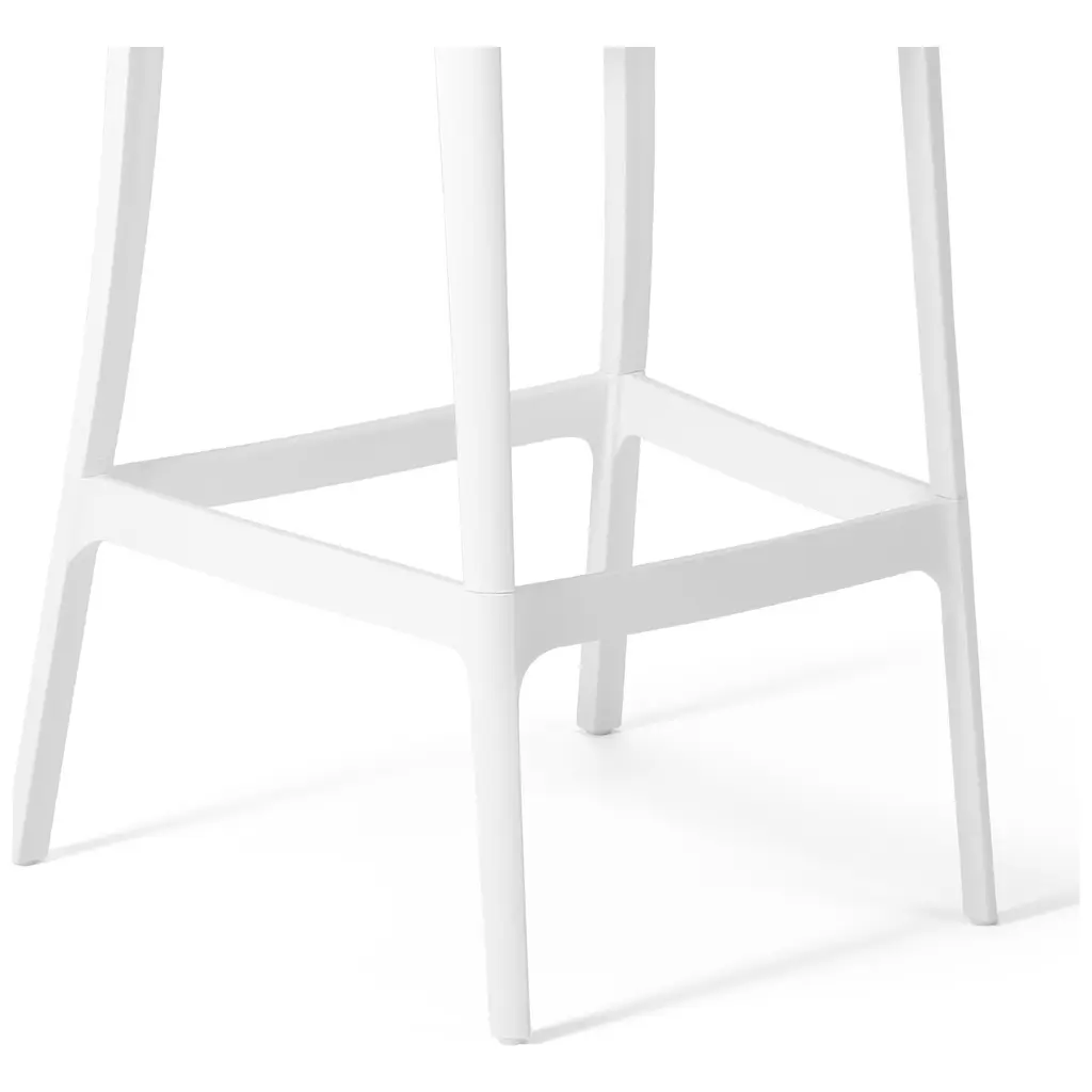 Add charm and vibrant style to your balcony or terrace with this set of two versatile outdoor bar stools. Crafted from durable, all-weather Polypropylene (PP) resin, these 29.5-inch high stools are designed to withstand the elements, maintaining their rich color year-round thanks to UV and fade-resistant properties. Lightweight and easy to move, they're perfect for creating a flexible dining or entertaining area, even in small spaces. A ventilated backrest ensures comfort on warm evenings, and a convenient footrest provides added support. Splayed back legs add stability. For added versatility, the bottom half of the base is removable, allowing these bar stools to convert into standard dining chairs. When disassembled, they offer a more compact storage solution.While we strive to accurately represent product colors, please be aware that actual colors may vary slightly due to individual screen settings and lighting conditions. FeaturesDetails:Bar Stool