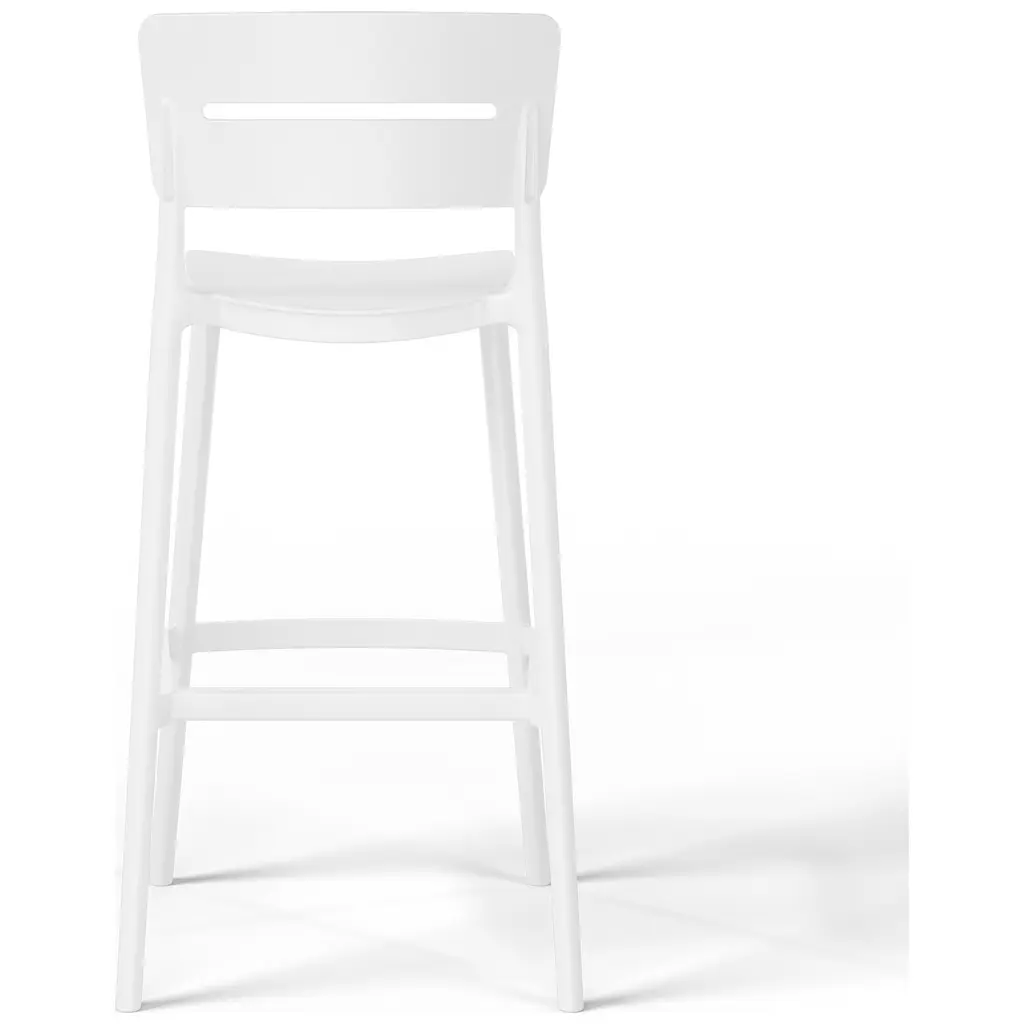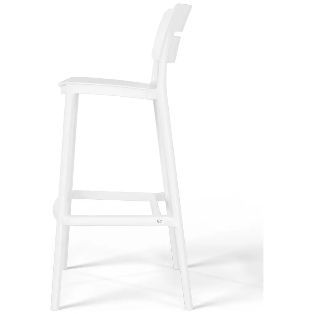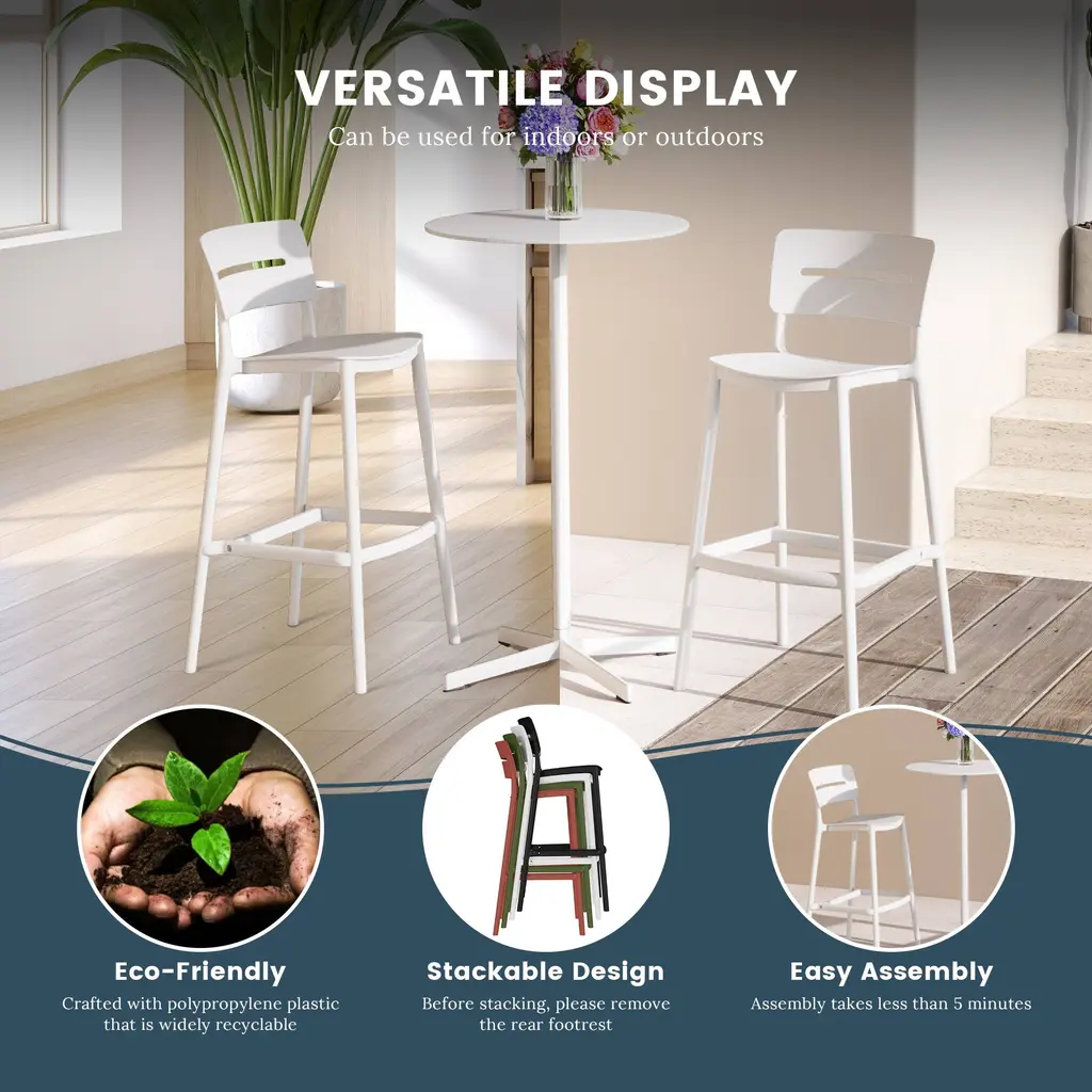 This set of two patio bar stools is perfect for pulling up to a pub table in your entertaining area or positioning around a patio kitchen island. Their simple and elegant design makes them easily portable, so adding extra bar seating for outdoor gatherings is effortless. Crafted from UV-resistant polypropylene resin, they require minimal maintenance. Four straight legs support each stool, featuring a wrap-around support bar that doubles as a comfortable footrest. For space-saving storage, simply remove the rear footrest and stack the stools when not in use. A smart choice for your outdoor spaces!While we strive to accurately represent product colors, please be aware that actual colors may vary slightly due to individual screen settings and lighting conditions. FeaturesDetails:Bar Stool