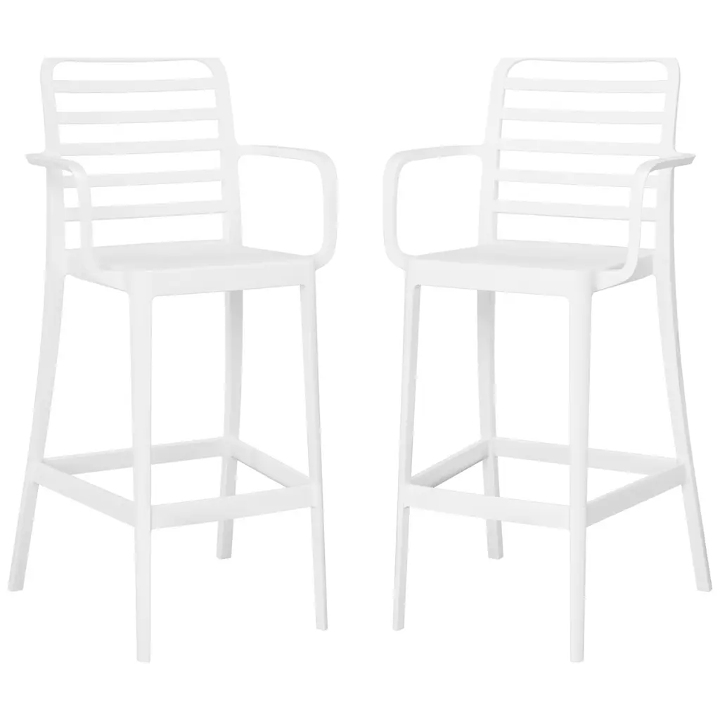 Frond And Form 29.5" Outdoor Patio Poly Plastic Bar Stool (Set Of 2) - White