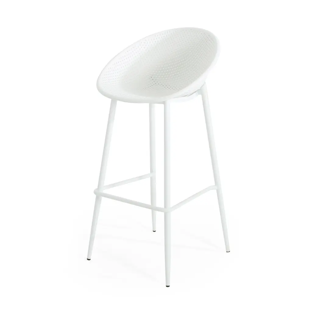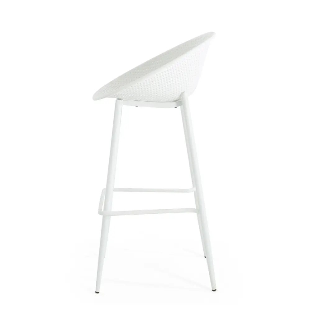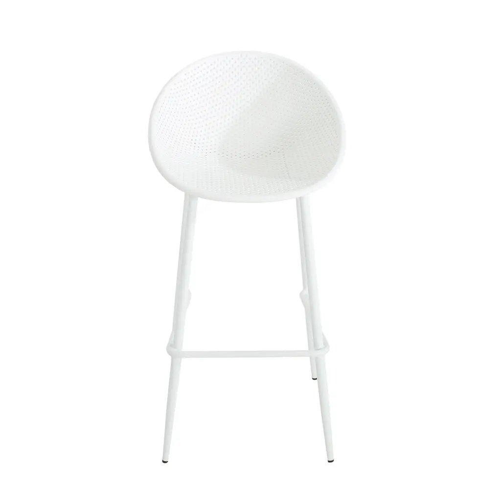 Highlight your outdoor space with sleek, smooth looks that will support you through the seasons. Featuring weather-resistant properties and a unique plastic blend material, our outstanding outdoor dining chair set provides astonishingly stable frames that will last you for years to come. This minimalistic design balances clean-cut lines and a perforated diamond mesh pattern to create an impressive look of sturdy structure and stylish comfort. Finished with a modern vibe, our chair set is sure to transform any backyard space into a refined masterpiece. MODERN DESIGN: With clean, precise lines, our barstools are the ideal modern accessory for your outdoor space. Finished with a perforated diamond pattern designed for breathability, each chair not only offers a chic, minimalistic look but also provides incredible structure. POLYPROPYLENE RESIN: Created with high-quality, specially designed polypropylene, our chair set is made to be highly durable and weather-resistant. Each individual component of our polypropylene blend is specifically chosen to create a unique mixture that ensures that your product is of the best quality. WEATHER-RESISTANT SET: Our set consists of weather-resistant material, known to repel water and resist sunlight. This durable set offers easy maintenance so you can spend all summer lounging outdoors in comfort. This comes as a set of two.