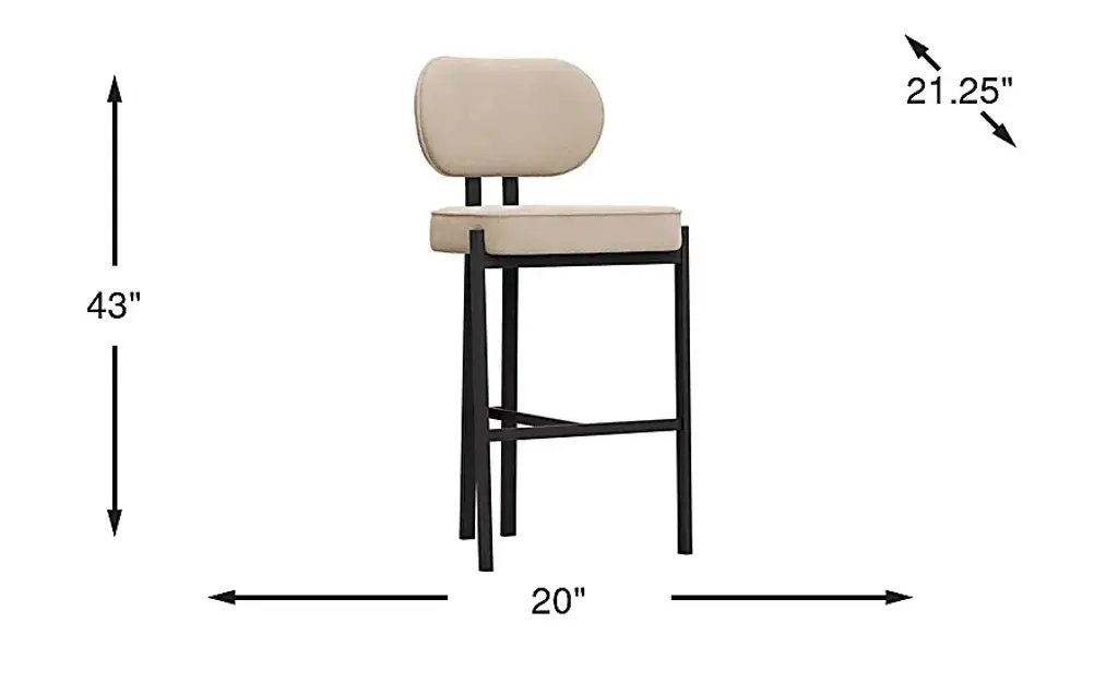 Explore new avenues in contemporary style and invite plenty of good conversation with the Gallico black stool's unique look and irresistible softness. A velvety fabric seat in cream perches gracefully atop four metal legs in black, arranged into a triangular shape for a stunning asymmetrical effect.