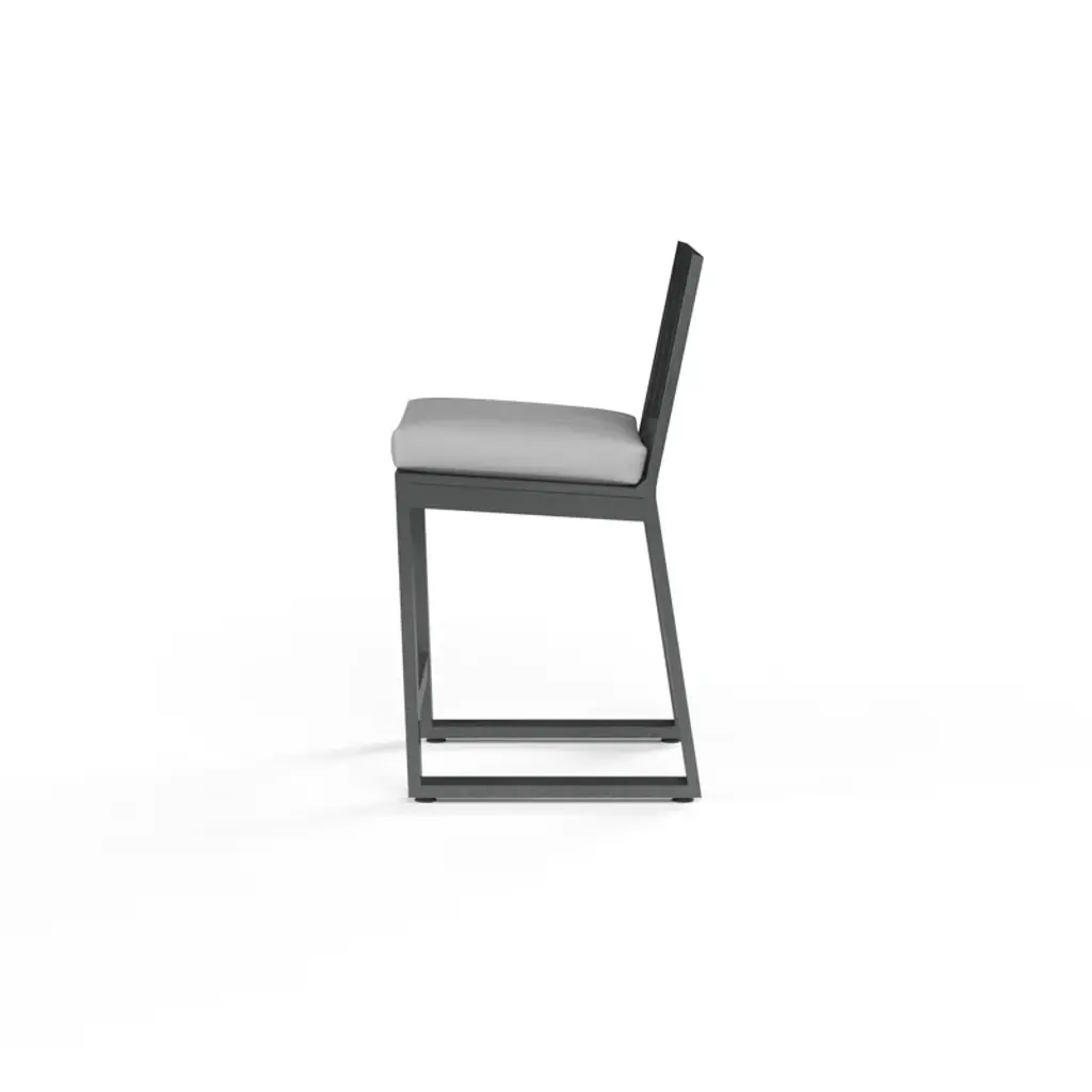 Crafted in the highest quality comfort and durability, the Georgie 26" Patio Bar Stool with Cushion will stand the test of time with minimal maintenance. Its powder-coated aluminum frame is finished in a polished burnished slate, its base protected by resin feet. Weather resistant, high-resilient density cushions are enveloped in quick ship fabric sunbrella cast silver.