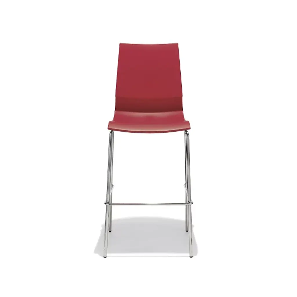 The Gigi Stools raise the Gigi flexible back design to new heights. Offered in Bar and Counter heights, and available in 6 vivid colors, this design suits tall workspaces and dining settings alike. The sturdy stool features a colored polypropylene frame with chrome-plated base.