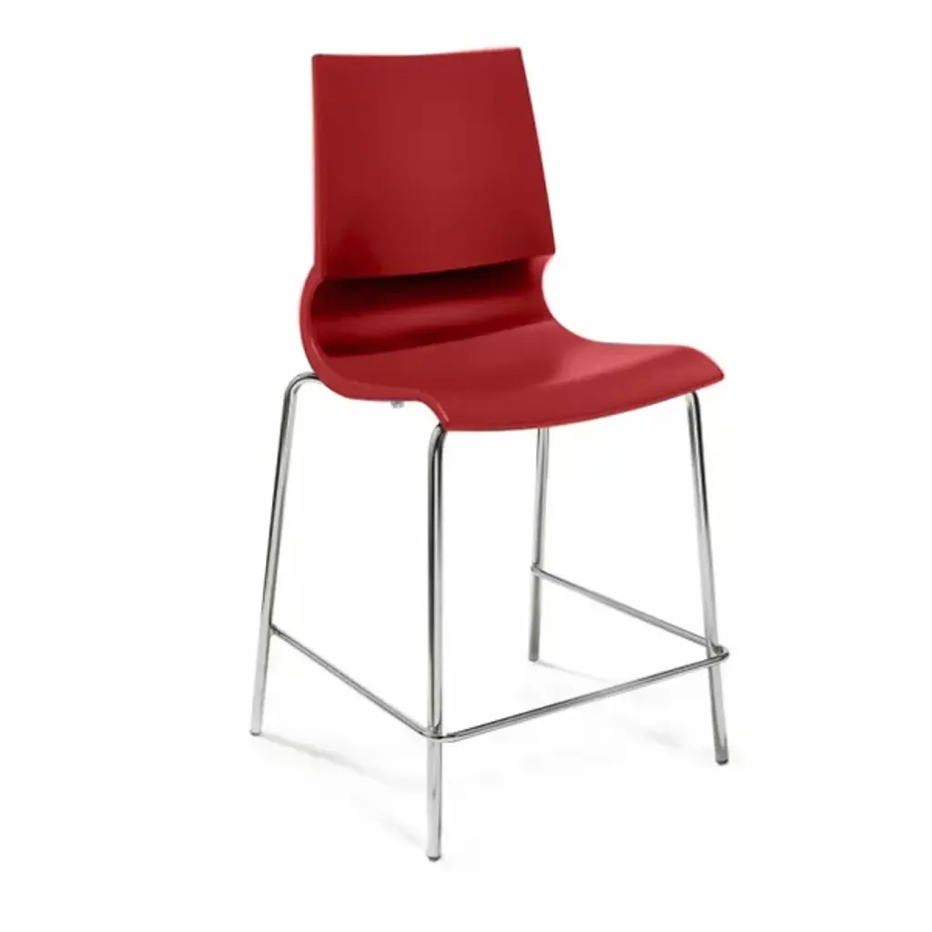 The Gigi Stools raise the Gigi flexible back design to new heights. Offered in Bar and Counter heights, and available in 6 vivid colors, this design suits tall workspaces and dining settings alike. The sturdy stool features a colored polypropylene frame with chrome-plated base.
