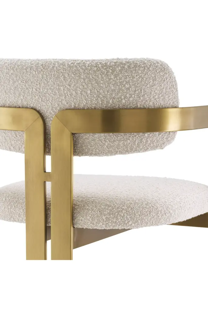 Inviting and refined with a hint of retro design, the Donato Counter Stool will add a touch of vintage style to any space. Featuring a geometric brushed brass frame with a circular seat and curved backrest in a Boucle cream upholstery, this bar stool pairs comfort with functionality.
