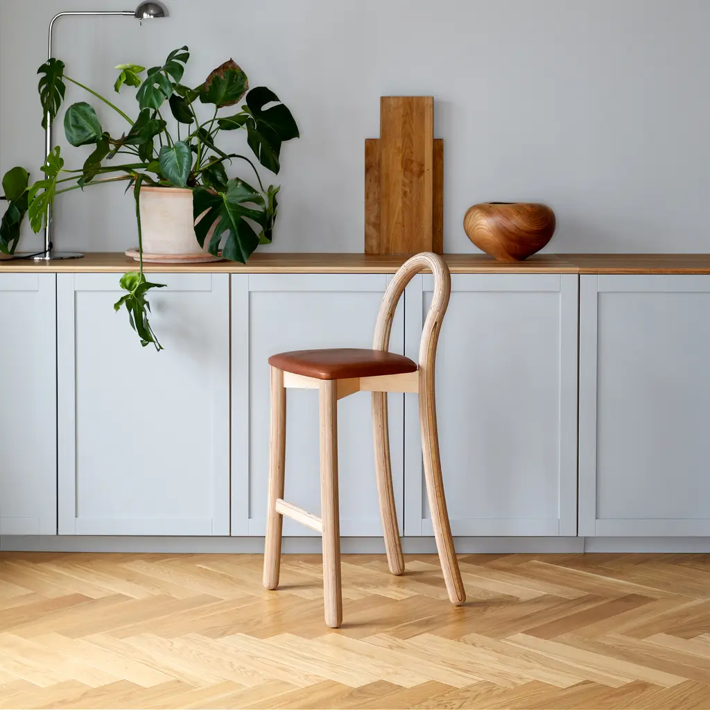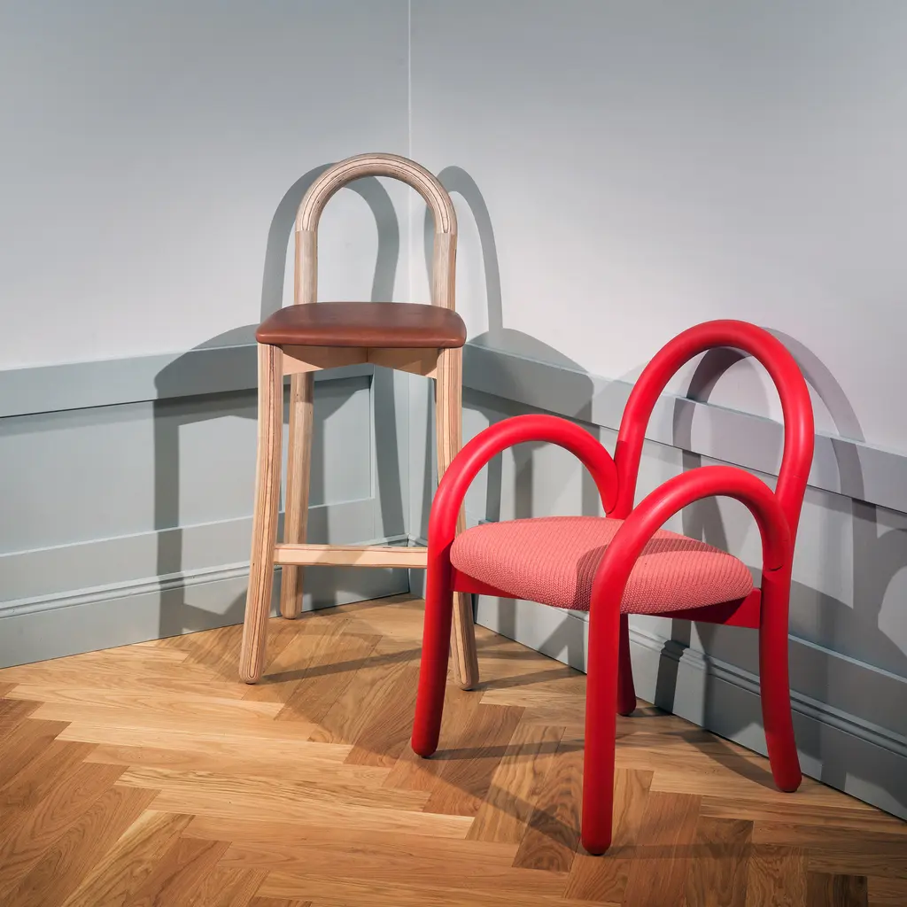 The barstool GOMA was created for a restaurant project of the same name. Goma by Miss Voon is an Asian street food and cocktail bar in the heart of Stockholm where the bar stool is a solid piece with a clean and obvious design language. The barstool also has a sibling chair and armchair, all with a strong and distinct character.