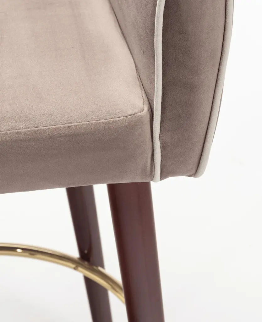 Stylish and elegant, grace bar stool is extremely comfortable in its perfect finishing’s. With its smooth edges, grace has definitely a familiar retro feeling. A perfect combination of highly comfortable and perfectly tailored upholstery with the elegance of a polished brass base. Made to Order. If you are planning on ordering an upholstery item with COM upholstery, please follow these instructions: - Let us know that you are shipping fabric to us prior to shipping, as we will need you to fill a form;- All fabrics must be shipped to the company DOOQ, LDA, and no other name;- Send us the fabric invoice so we can present it to portuguese customs so the fabric can be released;- Our company must appear on the fabric invoice as "SHIP TO" only, not as "BILL TO" or "SOLD TO"- Our company has the right to refuse acceptance of fabric/leather if the shipment of such material ignores the requirements written above;.