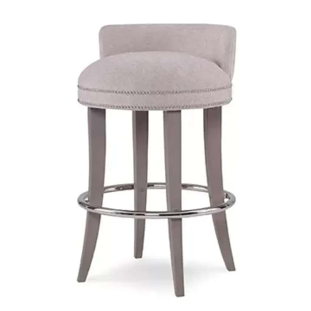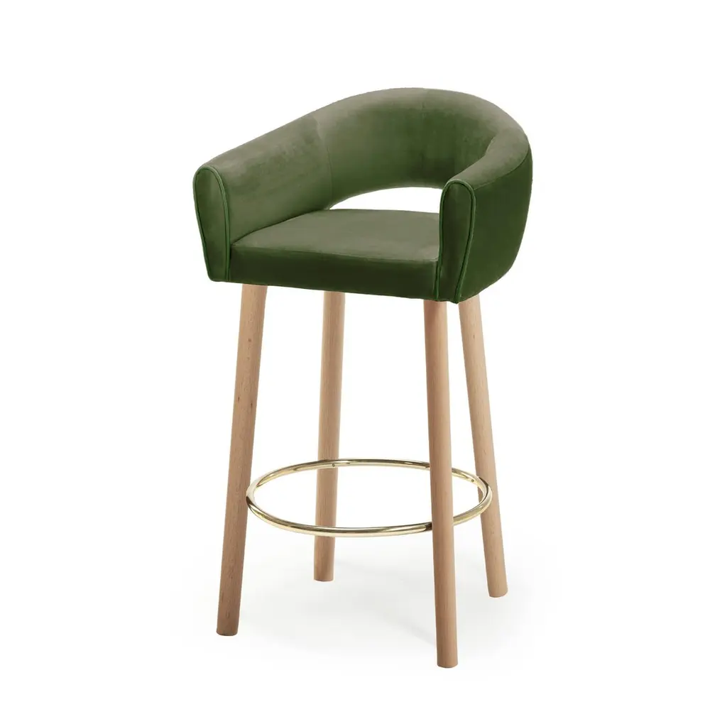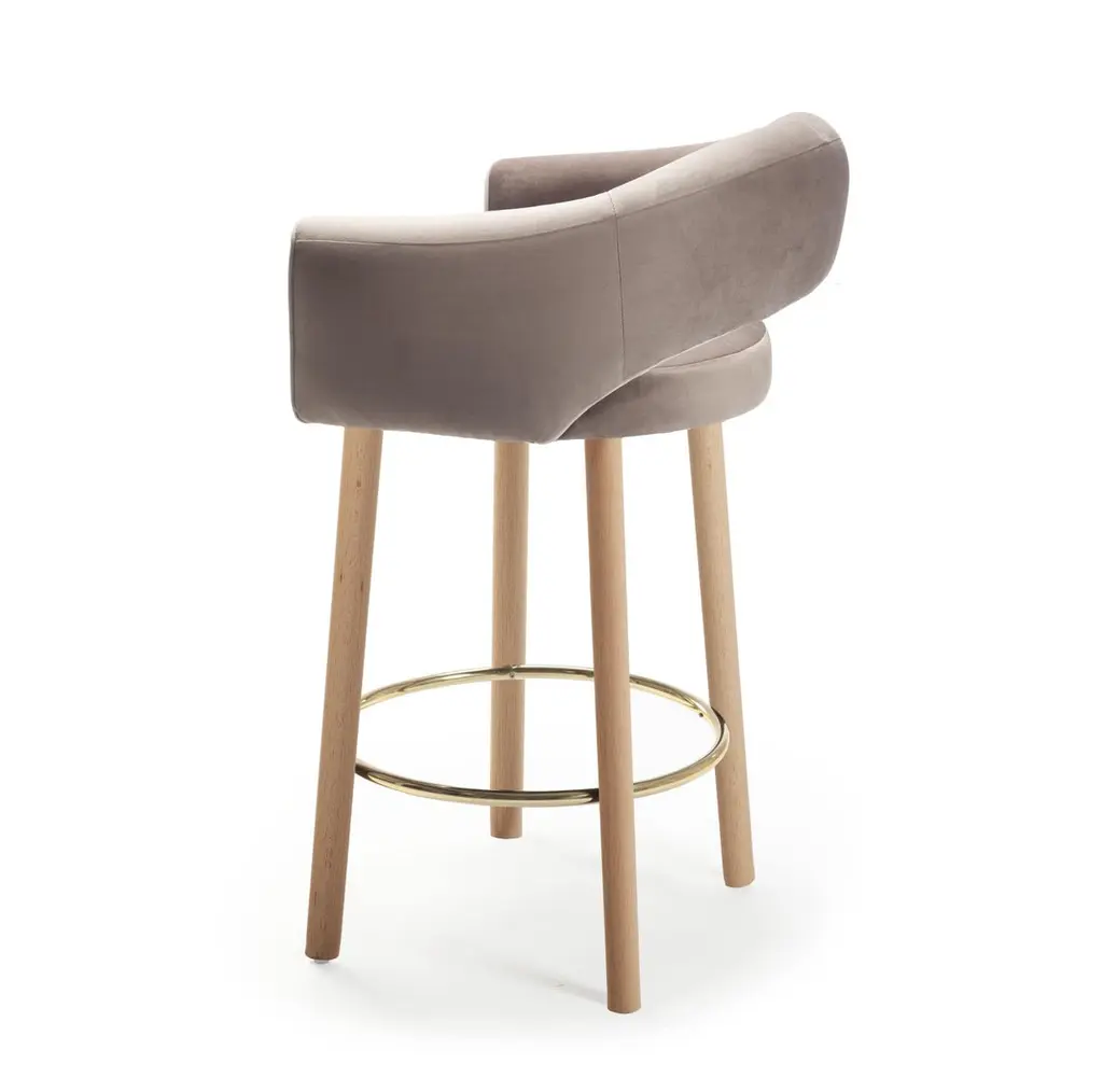 Grace Bar Stool Paris Mousse Fabric And Solid Wood Feet With Polished Brass Ring