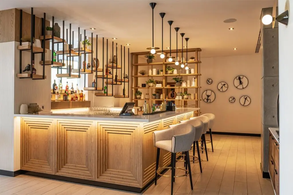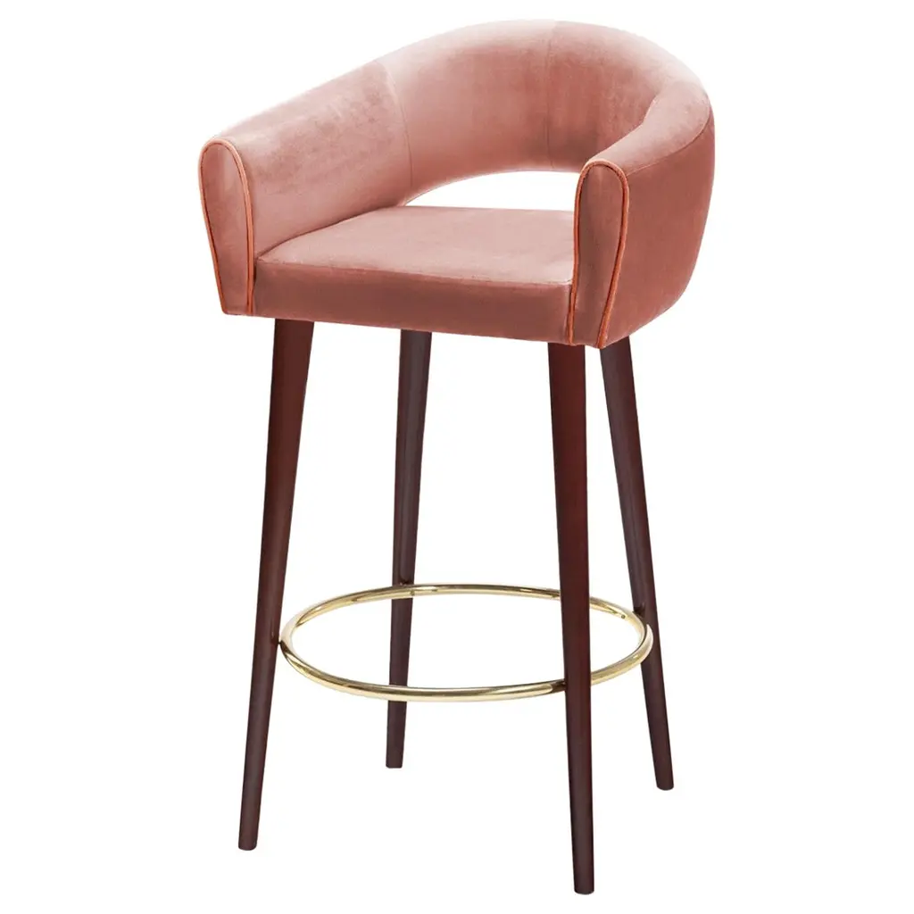 Grace Bar Stool Paris Salmon Fabric And Solid Wood Feet With Polished Brass Ring