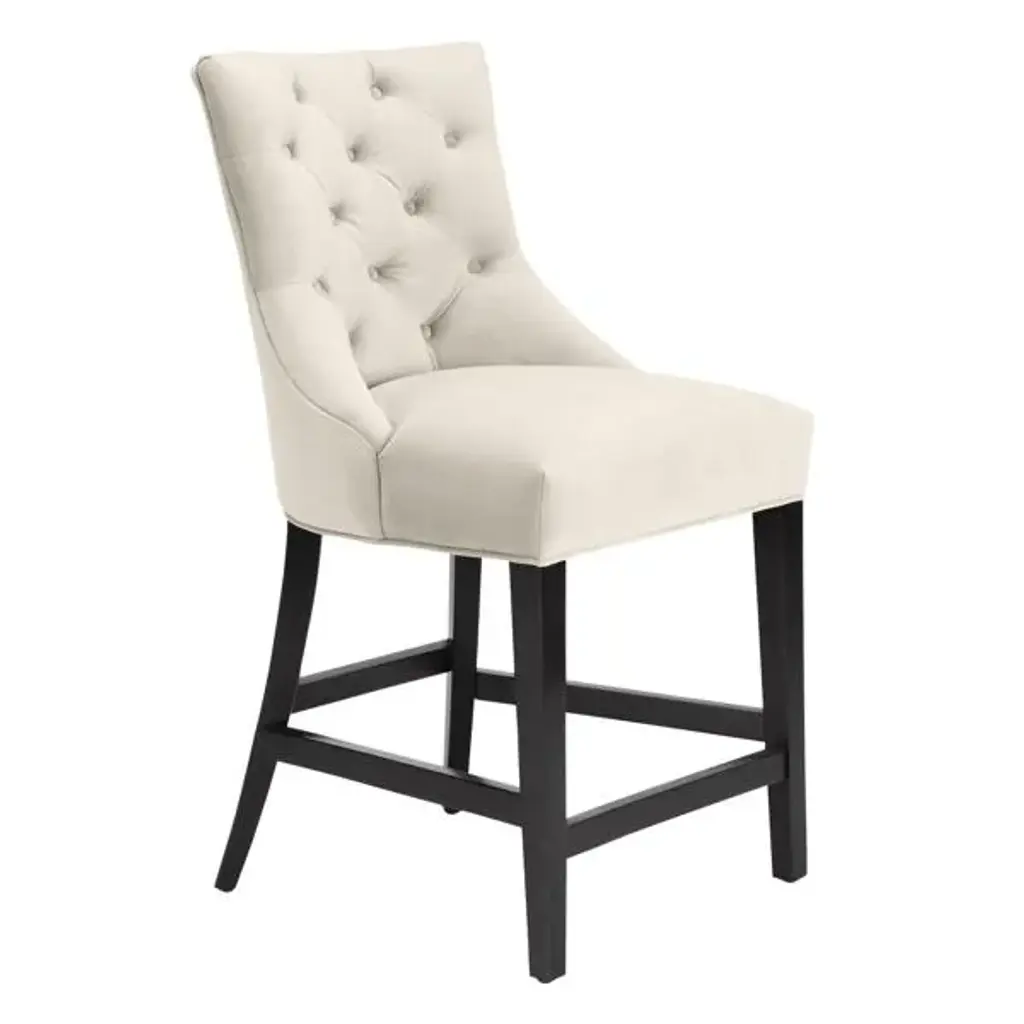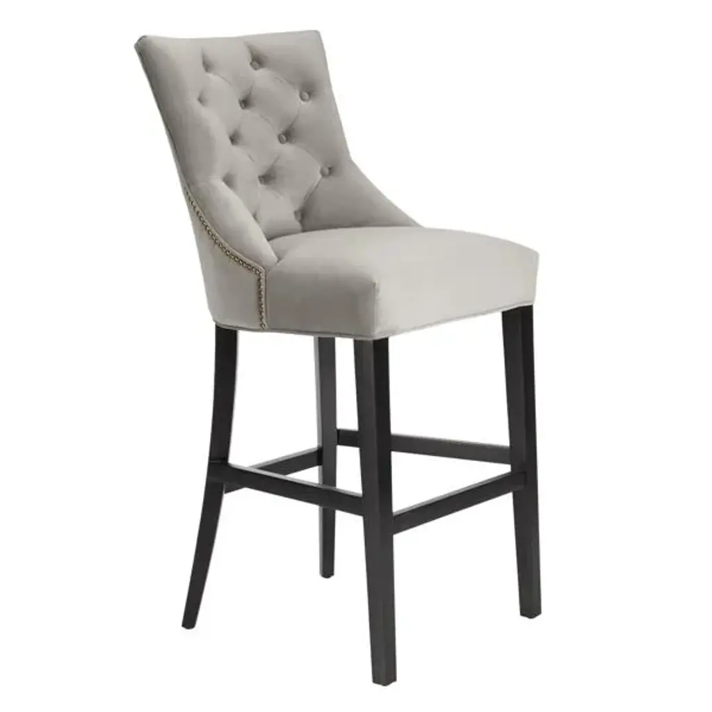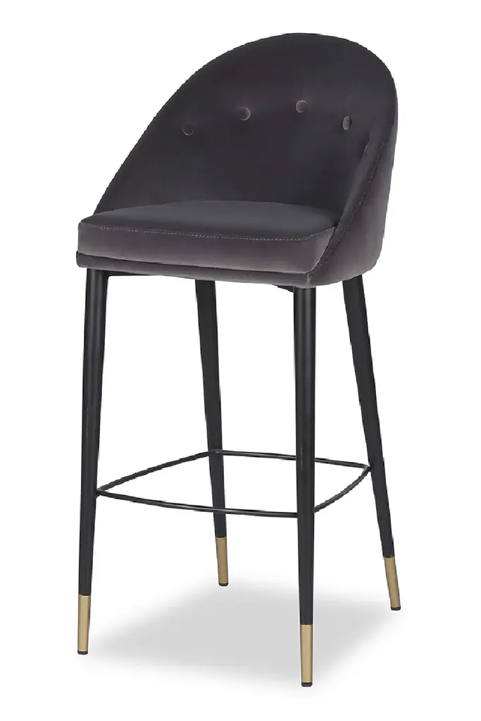 Upholstered in Gainsborough Nickel Gray Velvet, the Arden stool adds a classic style to any home interior and exudes luxury from all angles. With its delicate stitching and button seat back, the bar stool is finished with black legs and brass tipped feet to provide an elegant look.