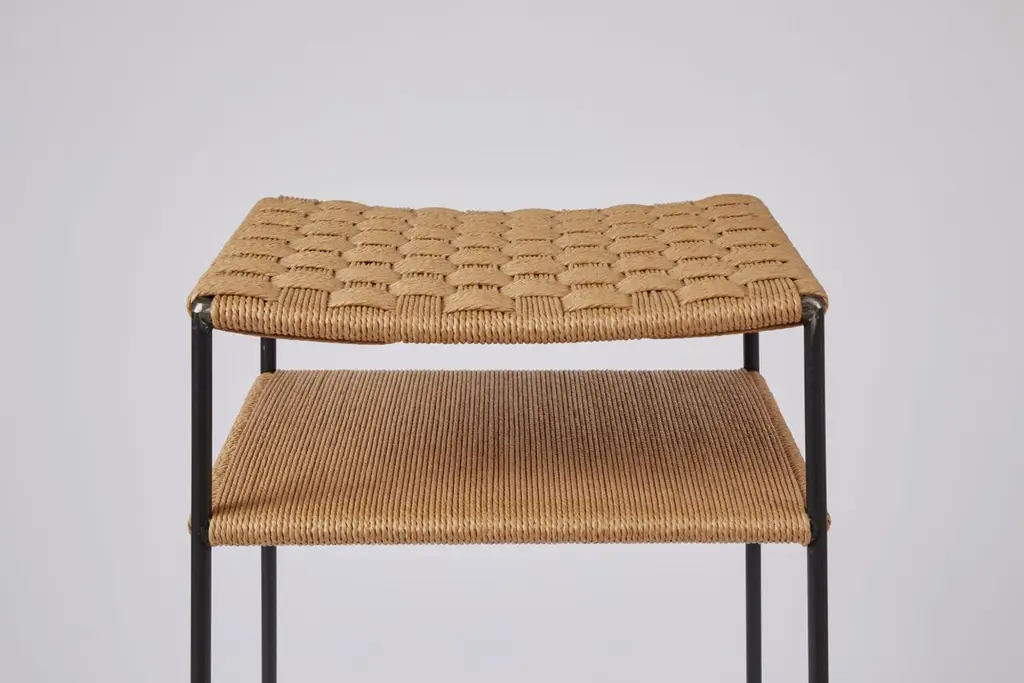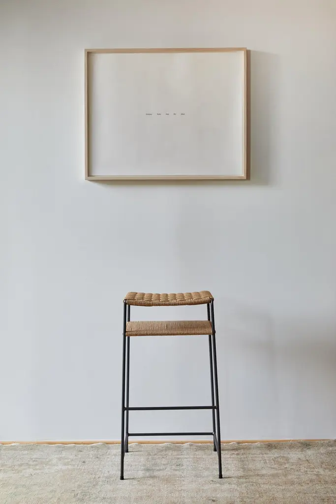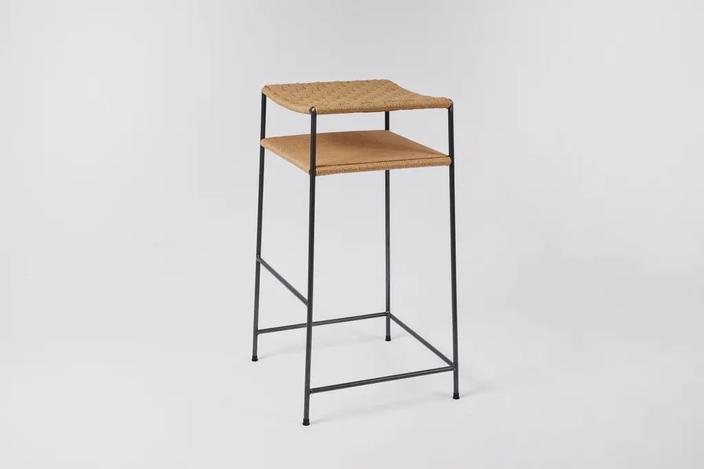 The rush seat and shelf are hand-woven by a master weaver with over 40 years experience.We use 70% recycled steel for the frame. For an additional charge the frames can be plated in bronze, polished nickel, or brushed nickel. Designed by a former art dealer who represented contemporary artists for over 30 years, including some of the giants of minimalist art. The inspiration the designer took from working with minimalist artists over decades is realized in the principles of simplicity, honesty, utility at the heart of MIlwood Design. Hand made locally in Venice, California.