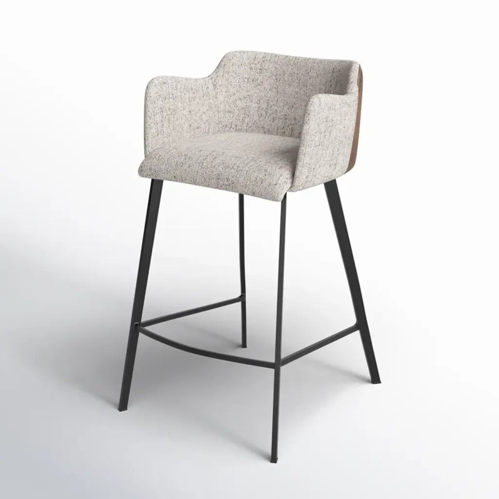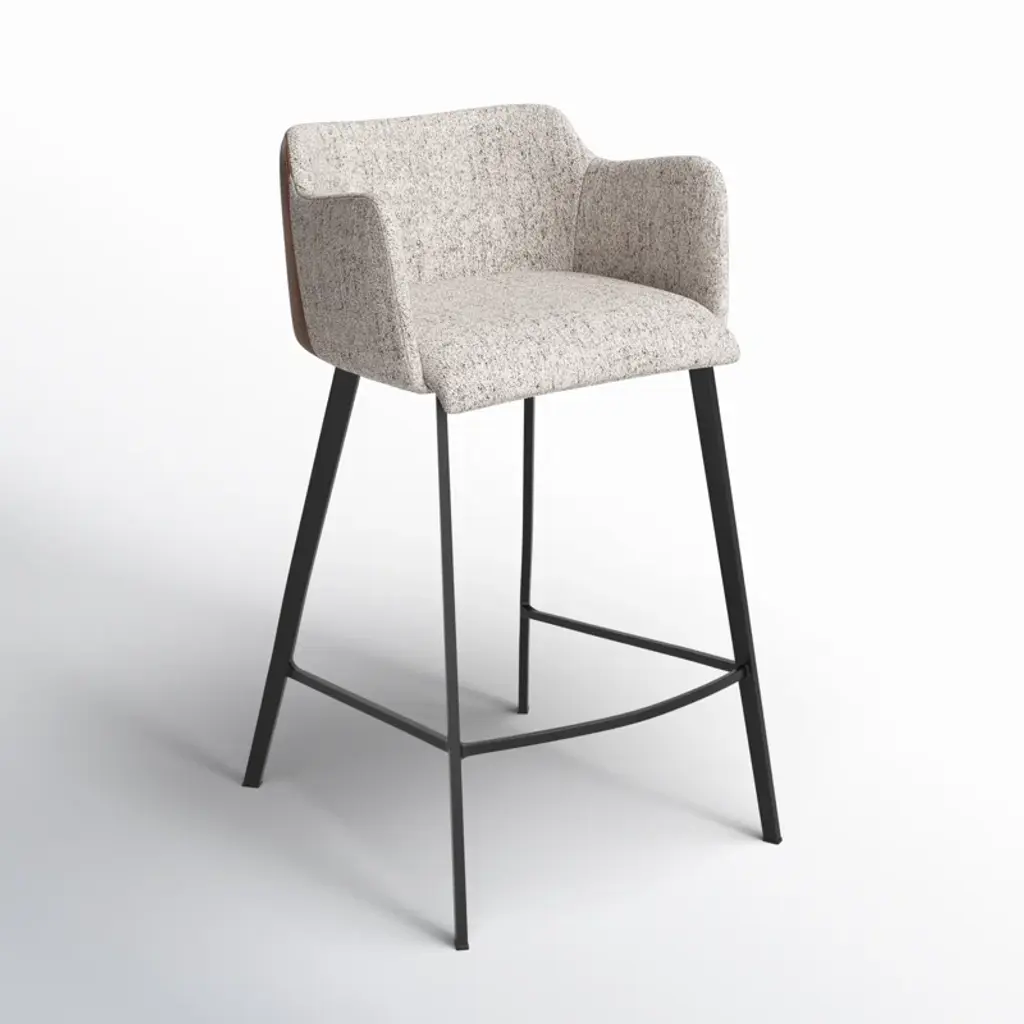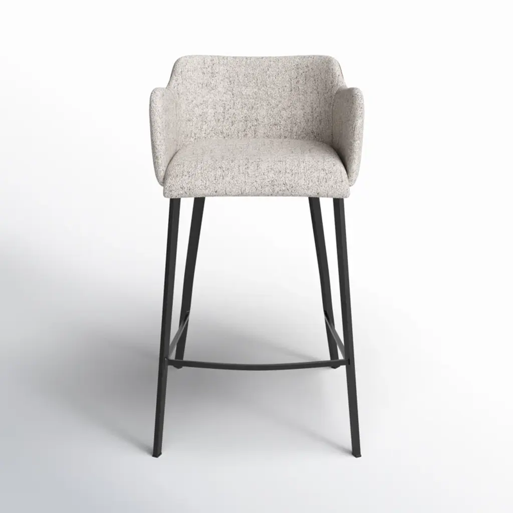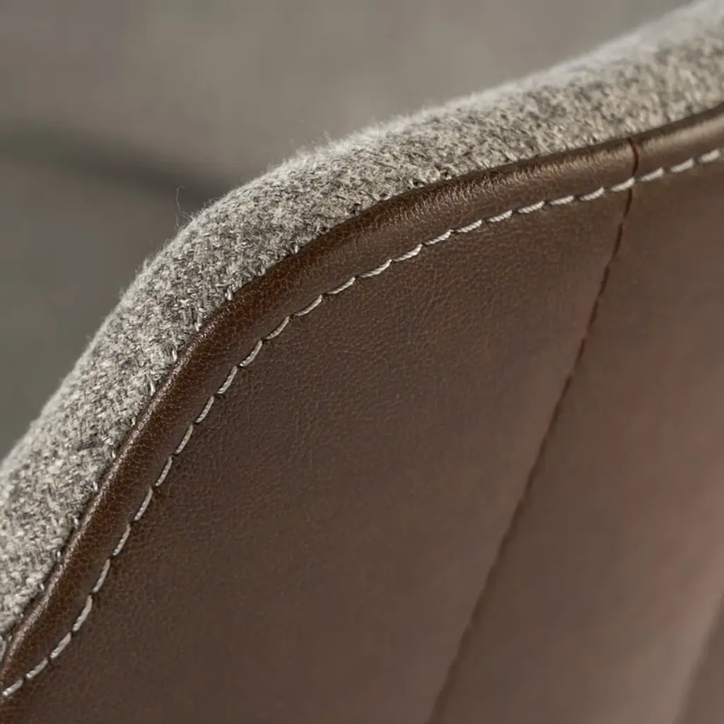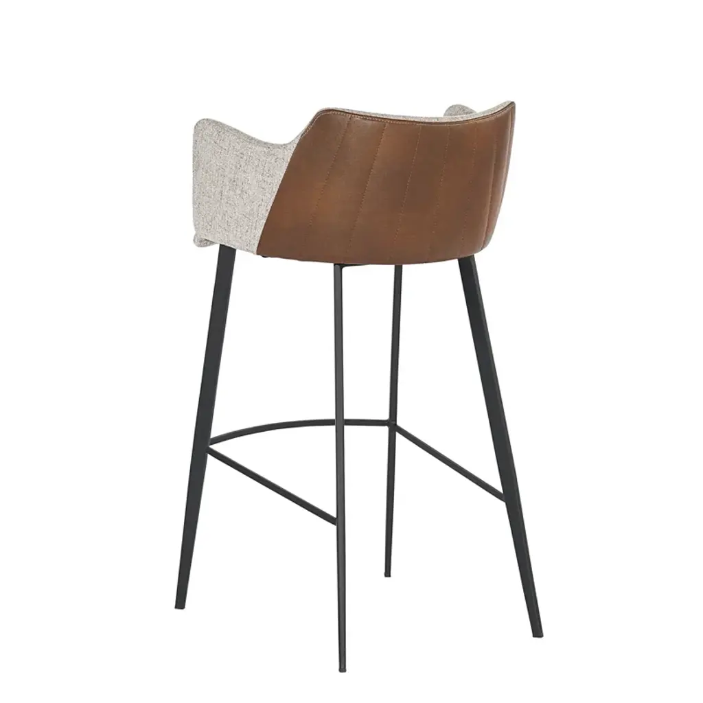 This modern stool will provide comfort and style to any residential or commercial space. Features an interior seat in November grey fabric and a contrasting channel stitched exterior seatback in bravo cognac faux leather. Finished with sturdy black powder coated iron legs.
