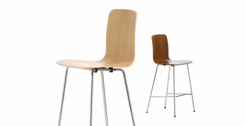 HAL Ply Stool Medium- Seat shell: plywood.- Base: chrome-plated tubular steel, non-stackable.HAL is Jasper Morrison's interpretation of a shell chair in the tradition of the Plastic Chair by Charles and Ray Eames, whose variety of different bases enables versatile use – from dining tables to meeting rooms, from bars to auditoriums. HAL is now also available in the version HAL RE with seat shells made of recycled plastic – as side chairs or armchairs.The chair bases exist in metal or wood, on castors as studio models or in high versions for bar stools and as a beam solution for waiting zones.These different base options can be combined either with a seat shell in plastic (HAL and HAL RE) or plywood (HAL Ply), or with a lightly padded shell covered in fabric (HAL Soft).The recycling material for HAL RE stems from Germany's 'Yellow Bag' (Gelber Sack) collection of household waste, which primarily consists of used packaging. Utilising this recycled material instead of conventional plastic generates fewer climate-damaging emissions and also significantly reduces energy consumption.Due to the composition of the recycled material, the different colours are interspersed with tiny specks of pigment. The colour white cannot be implemented in the new material at the moment and will follow as soon as technically feasible. The HAL RE seat shell can also be 100% recycled at the end of the product's life.When destined for use in large numbers in auditoriums, multipurpose rooms, training areas etc., HAL RE can be ordered with stackable bases, optional row connectors and seat numbering elements, as well as with a stacking trolley.The comfort of the pleasantly flexible plastic or wooden shells can be further enhanced through the addition of seat cushions or seat upholstery – or by opting for HAL Soft with its full upholstery.In the versions with a plastic shell and powder-coated base, HAL is also suitable for use in outdoor settings.The related HAL Armchair rounds out the HAL family.