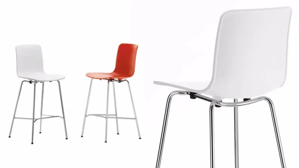 HAL Stool Medium- Seat shell: dyed-through polypropylene, with optional seat cushion (screwed to the seat shell).- Base: chrome-plated tubular steel, non-stackable.- Cushion in Hopsak fabricHAL is Jasper Morrison's interpretation of a shell chair in the tradition of the Plastic Chair by Charles and Ray Eames, whose variety of different bases enables versatile use – from dining tables to meeting rooms, from bars to auditoriums. HAL is now also available in the version HAL RE with seat shells made of recycled plastic – as side chairs or armchairs.The chair bases exist in metal or wood, on castors as studio models or in high versions for bar stools and as a beam solution for waiting zones.These different base options can be combined either with a seat shell in plastic (HAL and HAL RE) or plywood (HAL Ply), or with a lightly padded shell covered in fabric (HAL Soft).The recycling material for HAL RE stems from Germany's 'Yellow Bag' (Gelber Sack) collection of household waste, which primarily consists of used packaging. Utilising this recycled material instead of conventional plastic generates fewer climate-damaging emissions and also significantly reduces energy consumption.Due to the composition of the recycled material, the different colours are interspersed with tiny specks of pigment. The colour white cannot be implemented in the new material at the moment and will follow as soon as technically feasible. The HAL RE seat shell can also be 100% recycled at the end of the product's life.When destined for use in large numbers in auditoriums, multipurpose rooms, training areas etc., HAL RE can be ordered with stackable bases, optional row connectors and seat numbering elements, as well as with a stacking trolley.The comfort of the pleasantly flexible plastic or wooden shells can be further enhanced through the addition of seat cushions or seat upholstery – or by opting for HAL Soft with its full upholstery.In the versions with a plastic shell and powder-coated base, HAL is also suitable for use in outdoor settings.The related HAL Armchair rounds out the HAL family.