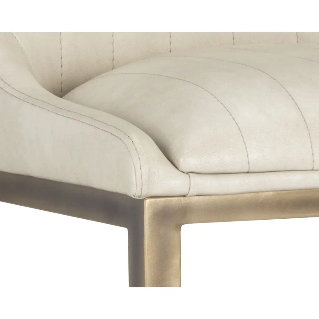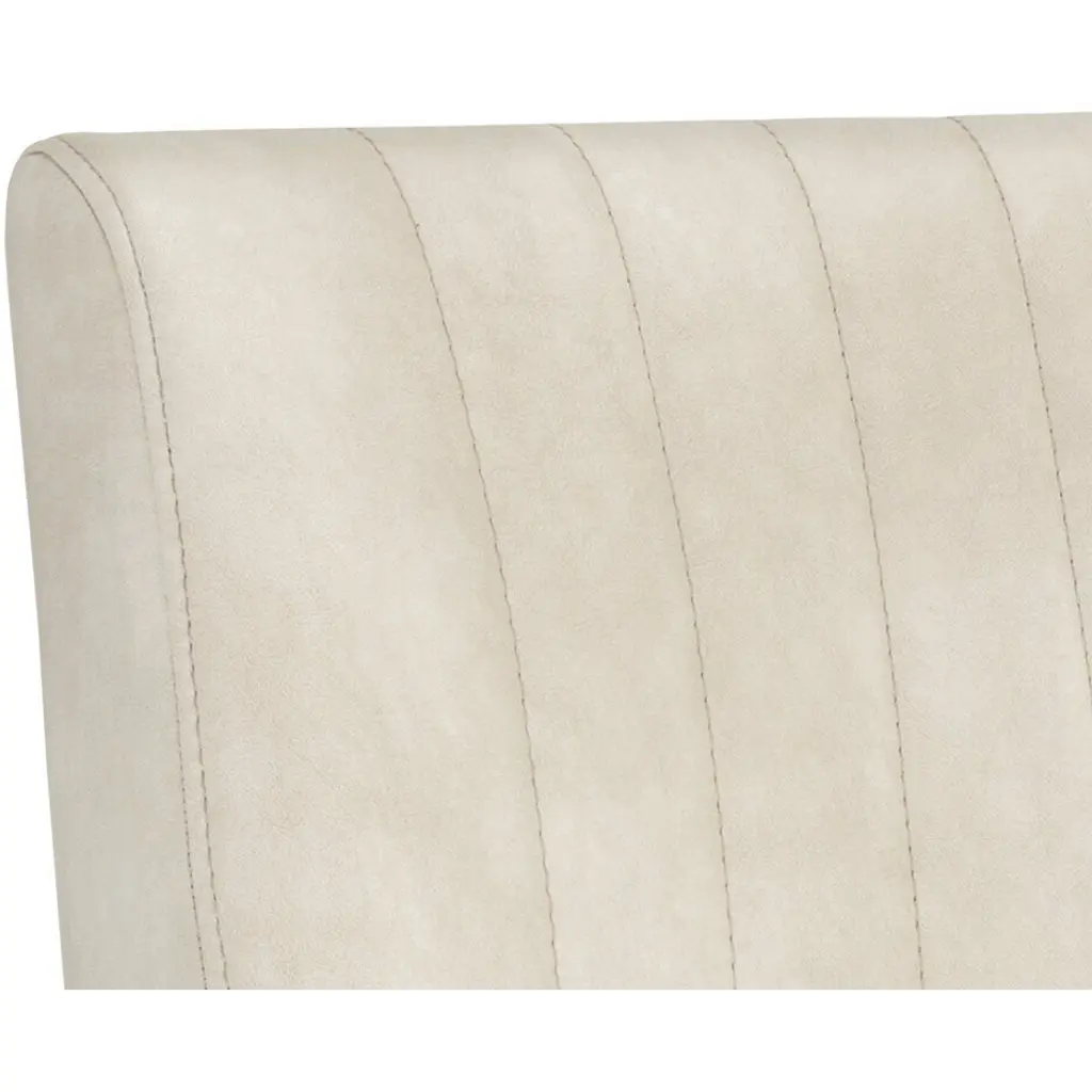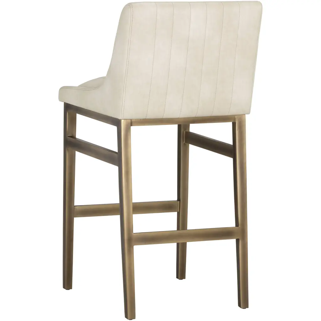 An urban designed stool featuring bold vertical channel tufting on the seat and back in bravo cream faux leather. Finished with a rustic bronze steel frame and stretchers. Great for residential and commercial placements. Suitable for various dining, kitchen and bar spaces of all sizes. Handle With Care: This design has been crafted with faux leather. Faux leather is manufactured to reflect the natural characteristics of leather as such, colour variations, markings, wrinkles, grooves, and light scratches are appreciated characteristics. No two pieces will be alike. Visit our Product Care page for more information on how to ensure the lasting beauty of this piece.