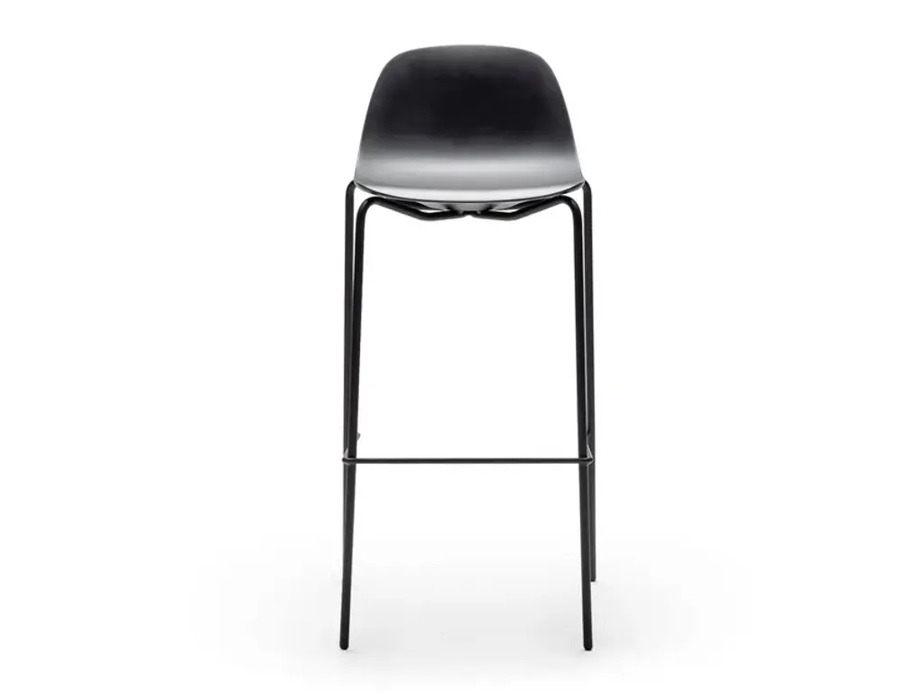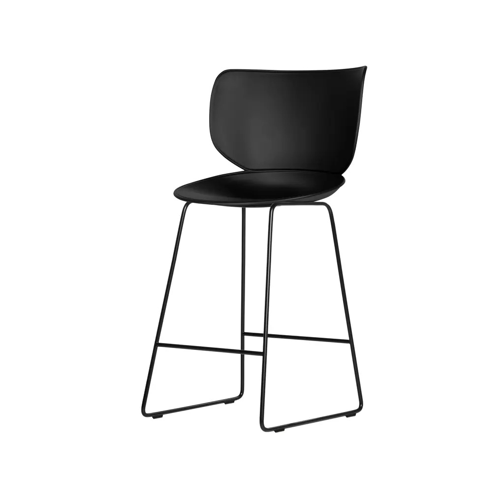 The Hana Bar and Counter Stool's petal-shaped backrest and flowing lines, inspired by a blooming flower, brings a sculptural design to elevated seating areas. The sturdy metal base is available in black or chrome finishes. Sold in sets of two, the Hana Bar Stool is suitable for residential and commercial use.