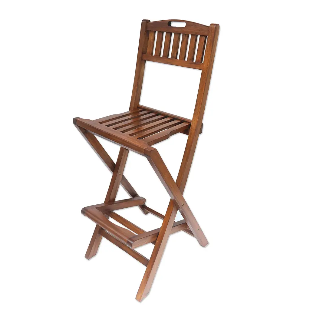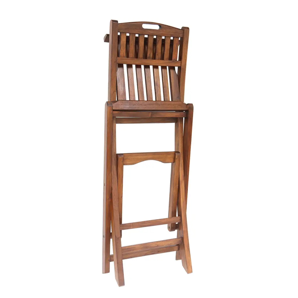 Handcrafted Teak Wood Folding Bar Stool Made In Bali- Parallel Slats
