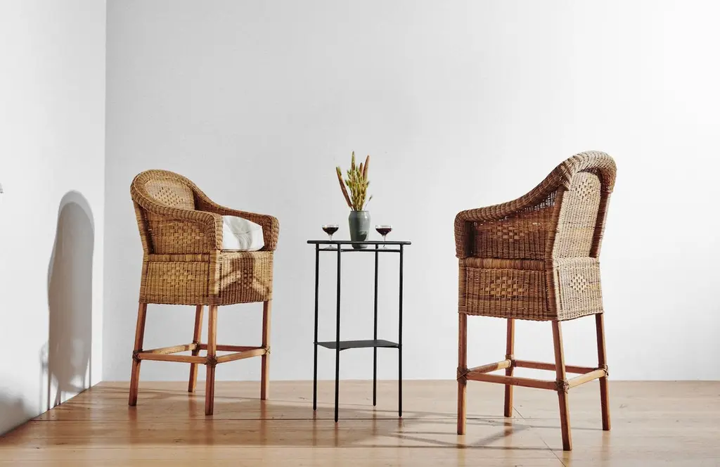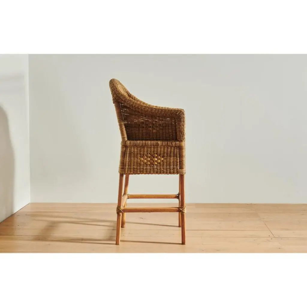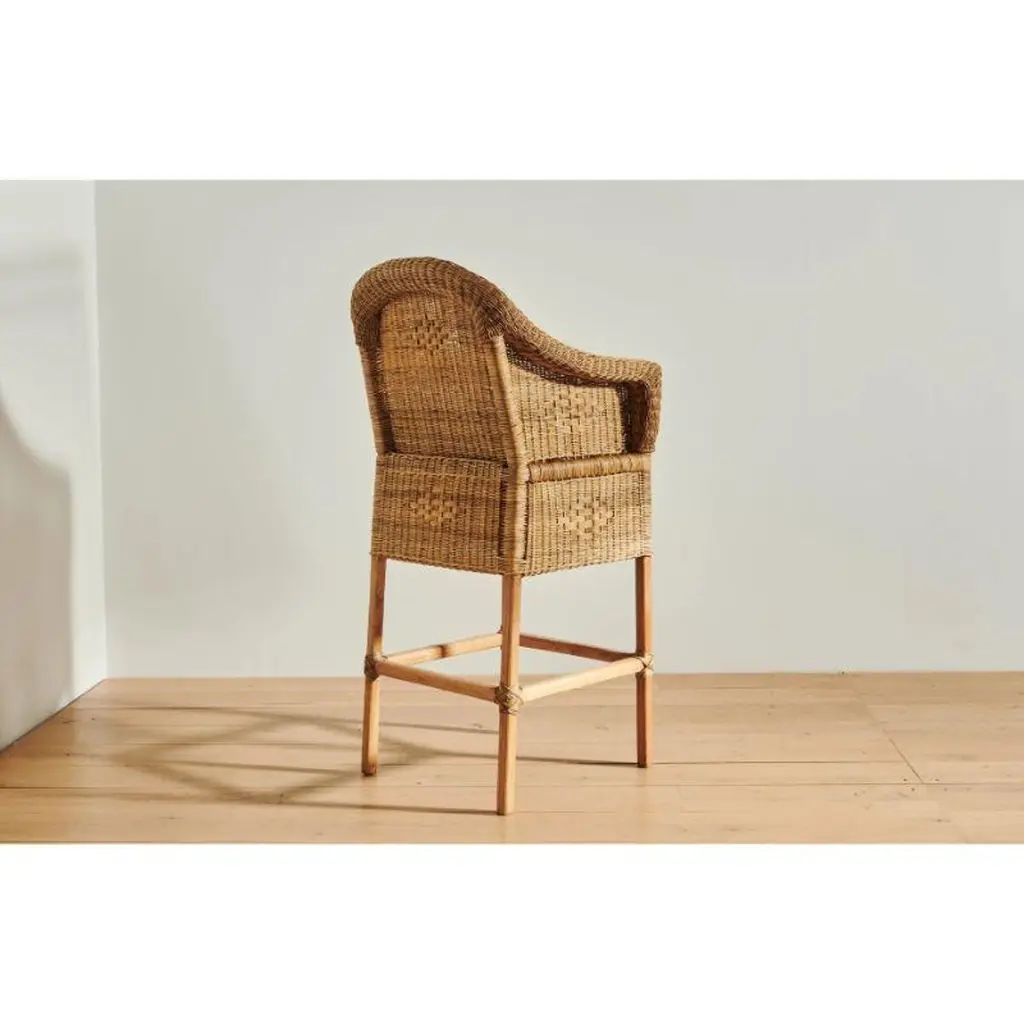 Malawi Cane's cane bar stool handwoven in a classic style with white linen cushion provides a comfortable seat for any bar, kitchen, or dining room.Malawi Cane offers exceptionally crafted cane furniture that is 100% authentic and handmade by master craftspeople using generations-old weaving techniques that take on average more than a week to produce just one item. Here at ZZ, we are thrilled to be their exclusive American partner, and we are beyond proud to offer these exquisite examples of craftsmanship, history and quality. With your choice of silhouettes and weaving styles, these pieces present a multitude of options for durable, thoughtfully constructed design in any room of your home.This stool’s organic and sturdy frame is designed to stand up to all your goings on, whether it be brunches, evening cocktails, or simply quiet mornings, all while maintaining its visual spirit. Add some handcrafted panache to your island counter, drafting table, or more with the addition of this well-made and conversation-worthy work. Bonus: Every chair also includes a plush linen and down-filled cushion so the conversation and creativity never need to cease.-Every chair also includes a plush linen and down-filled cushion-This product is comprised of handwoven cane and solid wood. This item is ageless in aesthetic, avoiding obsolescence, limited use, or an otherwise shortened lifespan due to changing styles and trends-This work is made with materials that promote a circular economy, including raw materials that are durable, easy to repair, and able to be recycled.