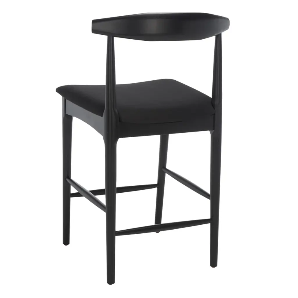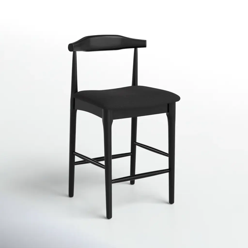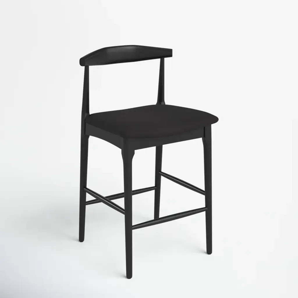 Modern and minimal. Our sleek stool features a curved back, tapered legs, and a cushioned seat for an effortlessly cool look we love. It's available in your choice of height, finish, and upholstery color to suit your space. A built-in footrest provides support. Plus, plastic glides on the feet protect your floors from scrapes and scratches.
