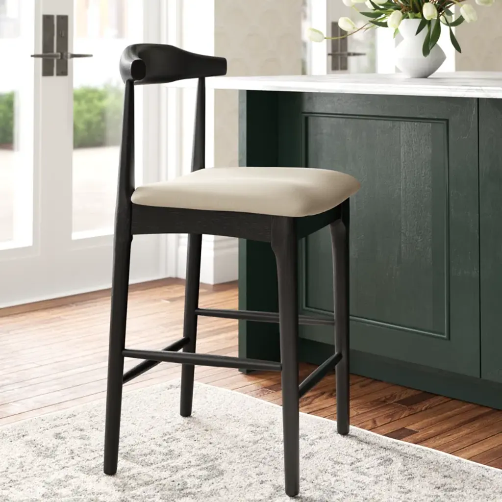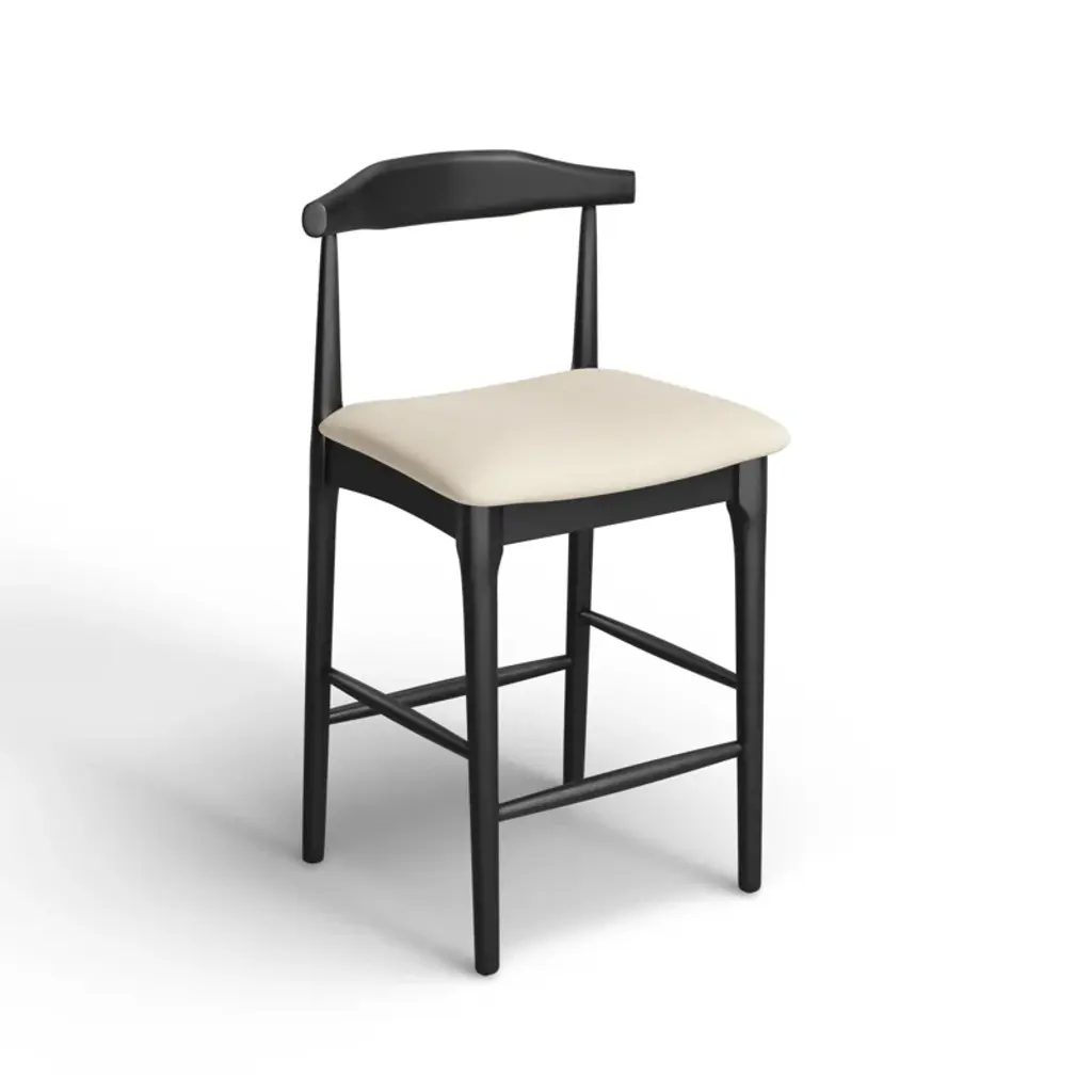 Modern and minimal. Our sleek stool features a curved back, tapered legs, and a cushioned seat for an effortlessly cool look we love. It's available in your choice of height, finish, and upholstery color to suit your space. A built-in footrest provides support. Plus, plastic glides on the feet protect your floors from scrapes and scratches.