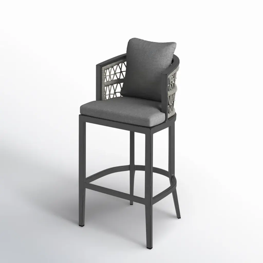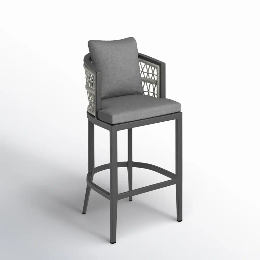 A perfect synthesis of modern aesthetics and outdoor comfort meticulously designed to elevate your outdoor entertaining space. This versatile stool seamlessly blends the sleek appeal of aluminum with the tactile elegance of rope detailing and plush cushions, creating a contemporary and enduring piece of outdoor furniture. Crafted with precision, the Kriton outdoor patio stool boasts a robust aluminum frame, ensuring durability and a refined aesthetic that effortlessly complements various outdoor settings. Available in both 26-inch and 30-inch heights, this stool caters to both bar and counter heights, providing flexibility to suit your specific needs. The water-resistant and UV-resistant features of the Kriton stool make it a resilient choice for your outdoor space. The solution-dyed acrylic fabric ensures vibrant colors and resistance to fading, offering lasting beauty in the face of changing weather conditions. Whether basking in sunlight or facing unexpected rain, this stool stands as a steadfast and stylish seating solution for your patio or outdoor bar area. The inclusion of rope detailing adds a tactile dimension to the design, creating a visually appealing contrast with the smooth aluminum frame. Paired with removable cushions, the Kriton bar or counter stool invites you to relax in both style and comfort, offering a luxurious seating option for your outdoor gatherings. Whether you're sipping cocktails by the bar or enjoying a casual meal at the counter, the Kriton stool's versatility enhances your outdoor lifestyle.