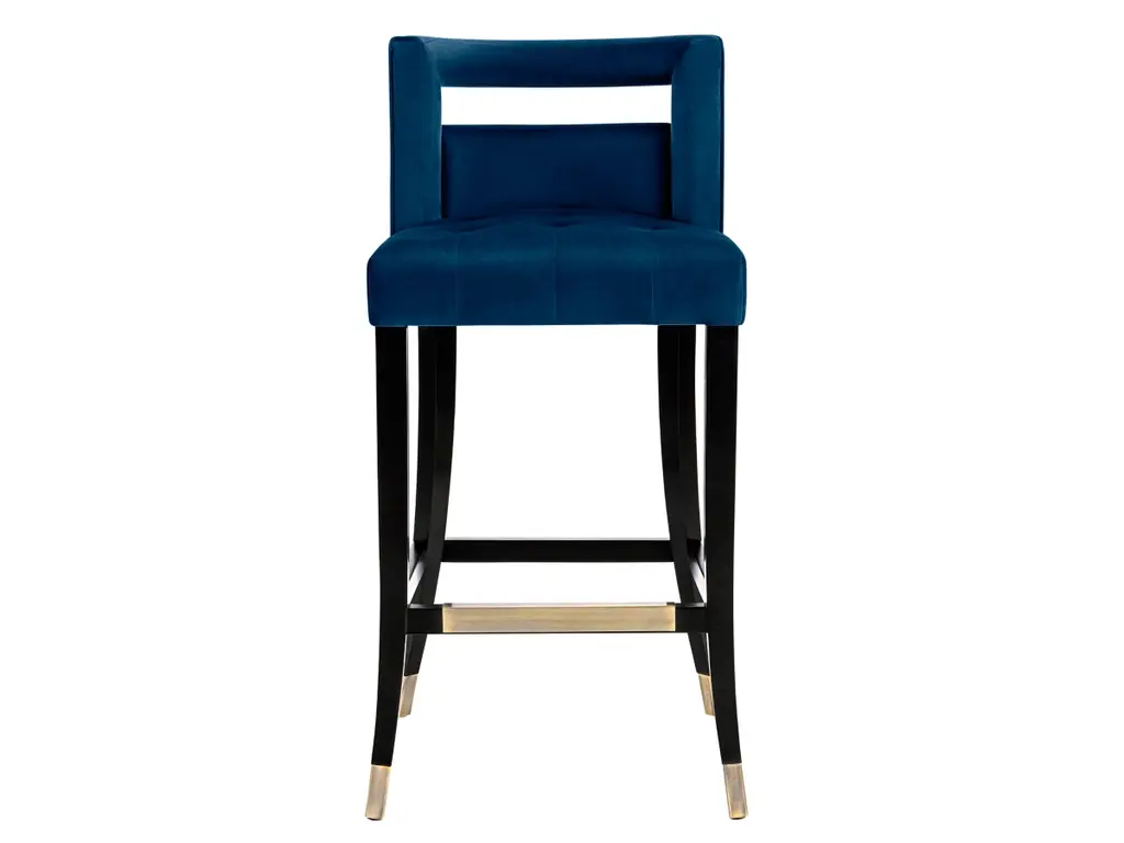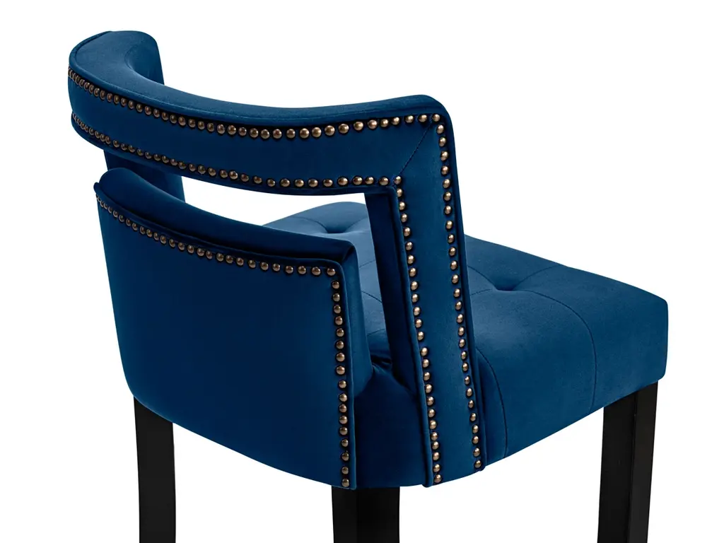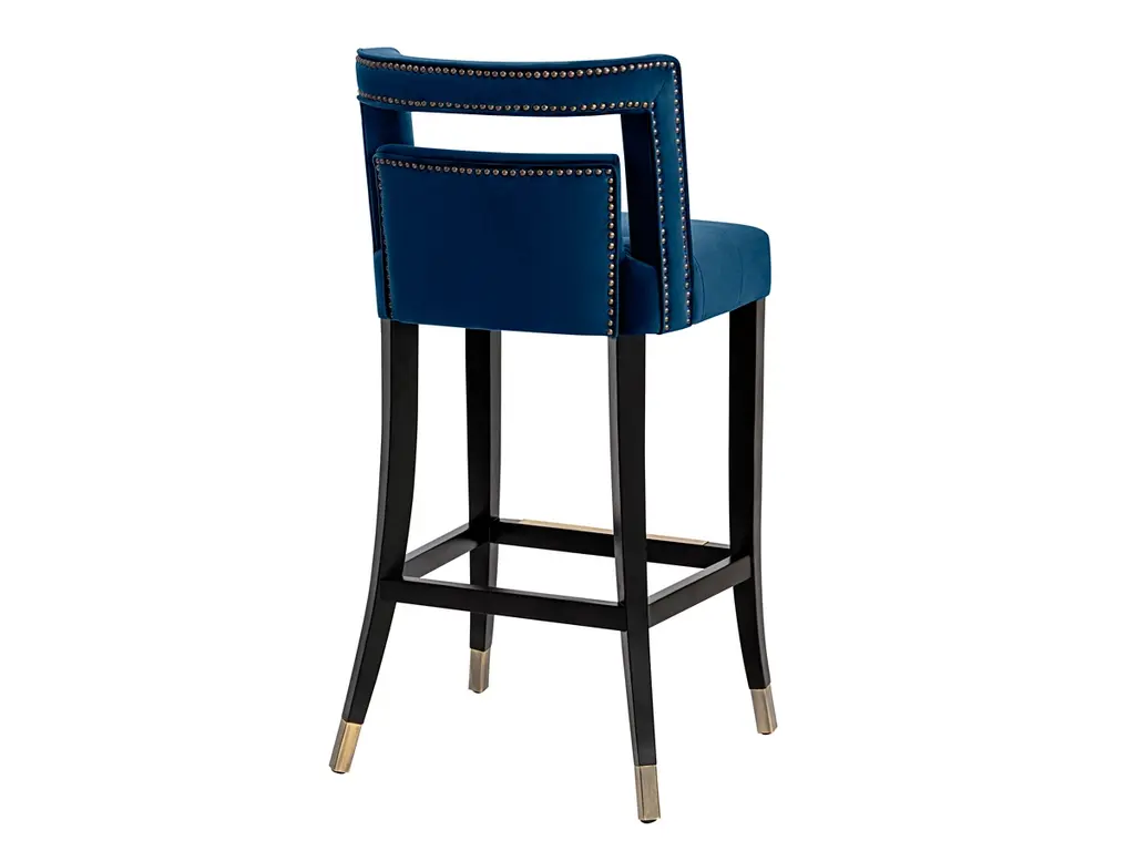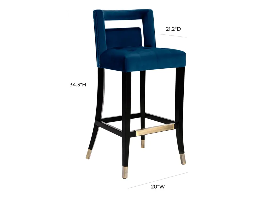 Not for the faint of heart, these stools will make you swoon. Making their debut with a bold statement, the Hart stool is available in bar and counter height options, in your choice of sumptuous grey or navy velvet. Hand-applied nailheads and metal tipped legs match the accompanying footrest.