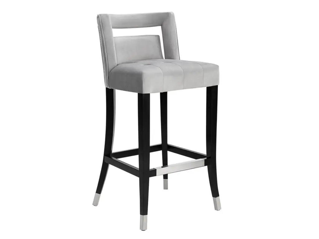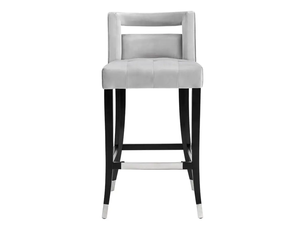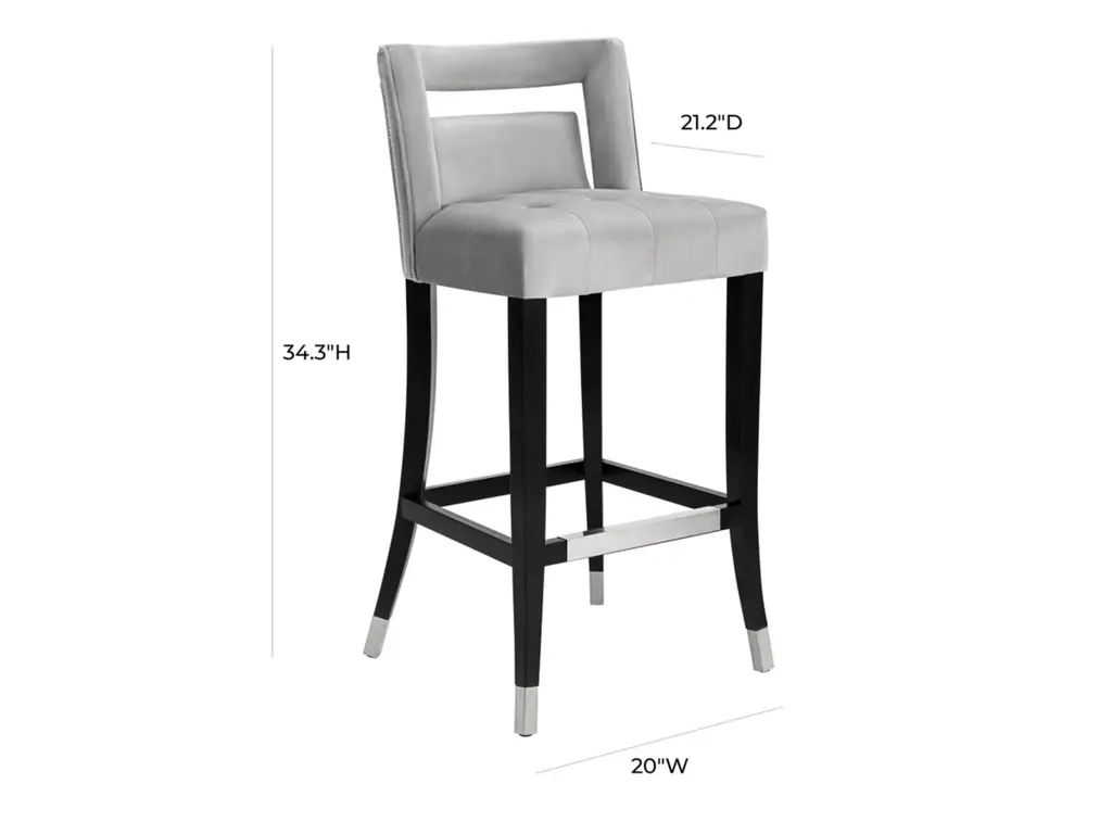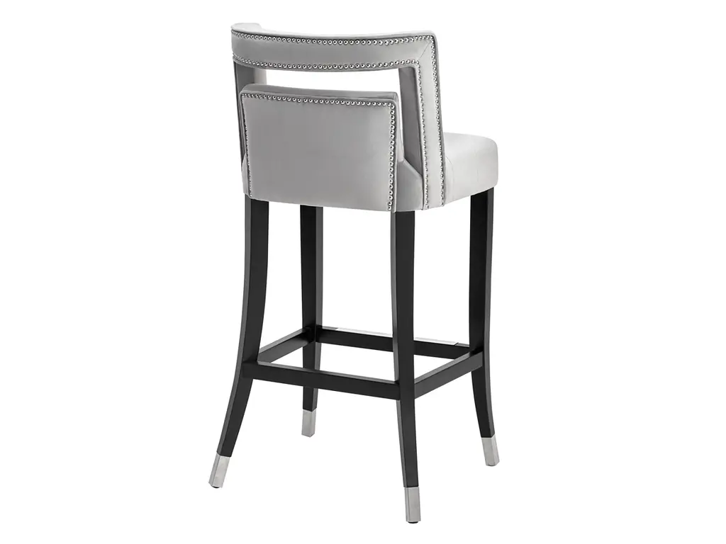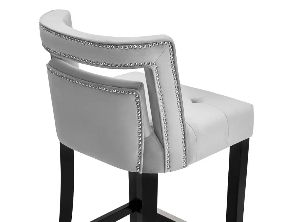 Not for the faint of heart, these stools will make you swoon. Making their debut with a bold statement, the Hart stool is available in bar and counter height options, in your choice of sumptuous grey or navy velvet. Hand-applied nailheads and metal tipped legs match the accompanying footrest.