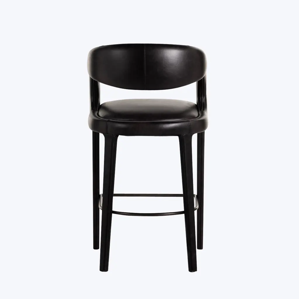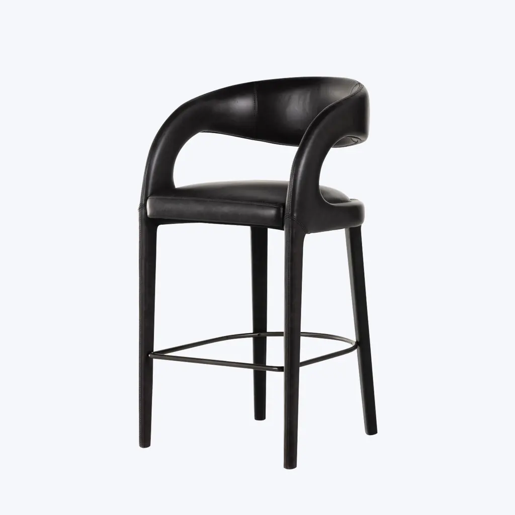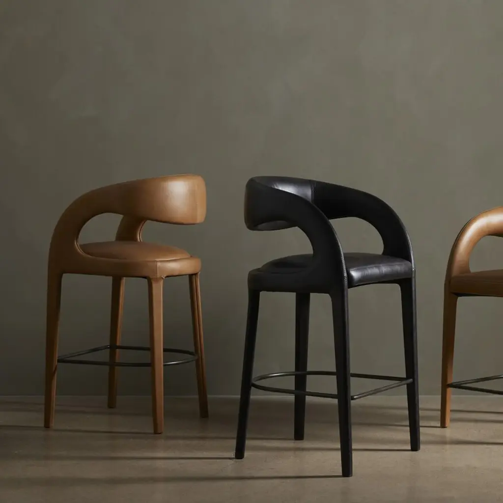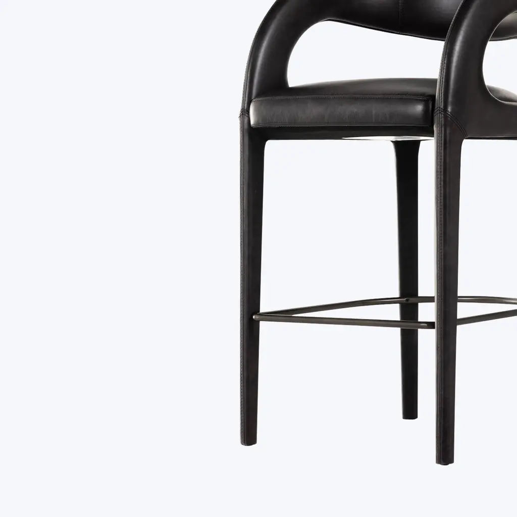 With curves in all the right places, the Hawkins Leather Bar Stool by Four Hands makes a stunning statement. This finely sculpted piece comes in black and butterscotch top-grain leather, coupling cool contemporary form with its fabricÕs timeless sophistication.