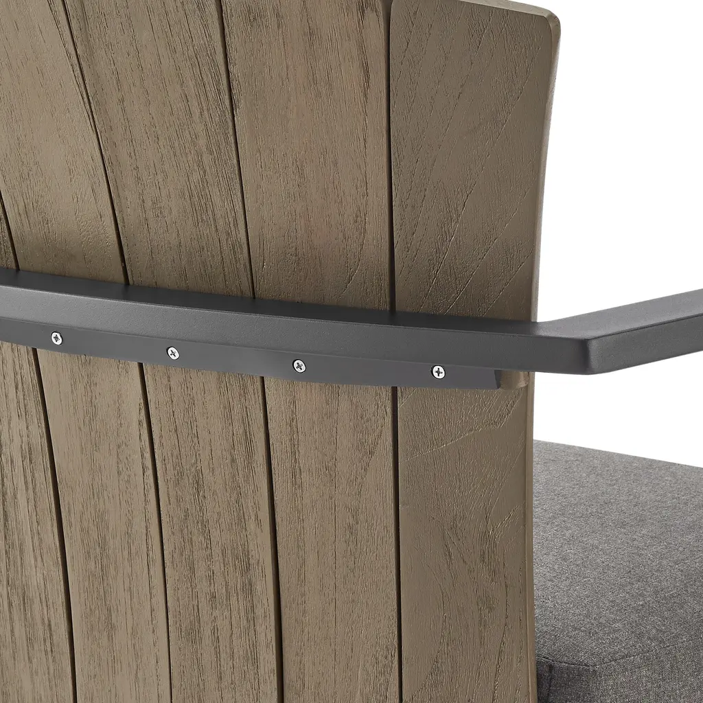 Hazel Solid Teak Wood And Metal Outdoor Patio Bar Height Swivel Adirondack Chair Bar Stool - Charcoal