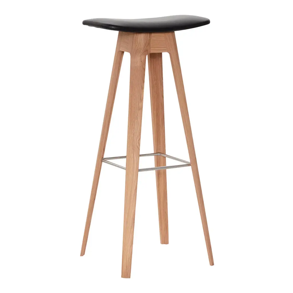 In collaboration with architect and designer Anne Qvist, Andersen has created a new and extraordinary bar stool. The stool has a wonderful lightness and a soft visual style. It is elegant and very tastefully done and can be used in many contexts. The stool comes in several variants and styles. The beautiful wooden base is made of oak and is also available in black lacquer. You can choose between padded or wooden seat. The Chair is available in two heights and also has the unique detail that it can be hung on a high table. Practical and elegant – it's simple.