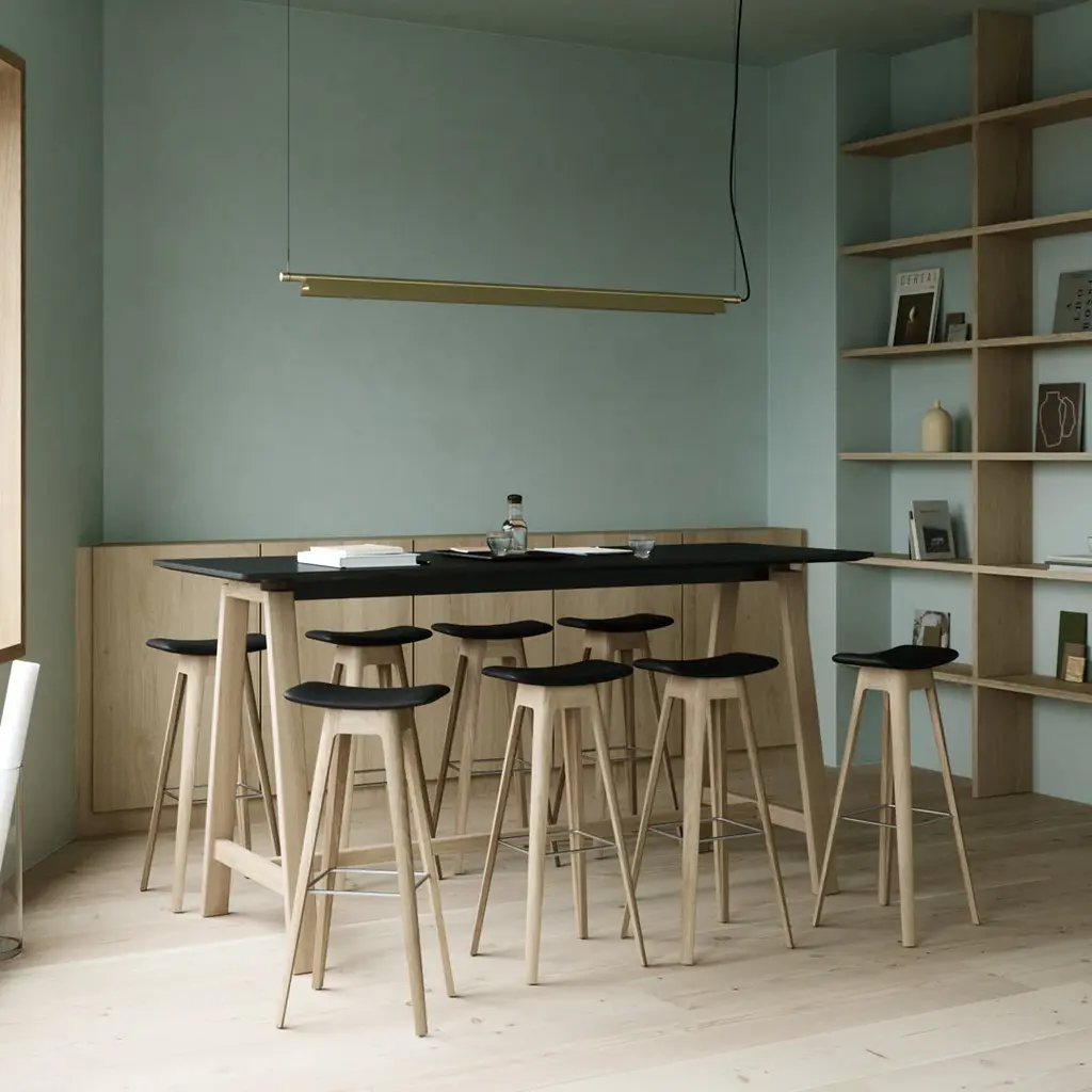 In collaboration with architect and designer Anne Qvist, Andersen has created a new and extraordinary bar stool. The stool has a wonderful lightness and a soft visual style. It is elegant and very tastefully done and can be used in many contexts. The stool comes in several variants and styles. The beautiful wooden base is made of oak and is also available in black lacquer. You can choose between padded or wooden seat. The Chair is available in two heights and also has the unique detail that it can be hung on a high table. Practical and elegant – it's simple.