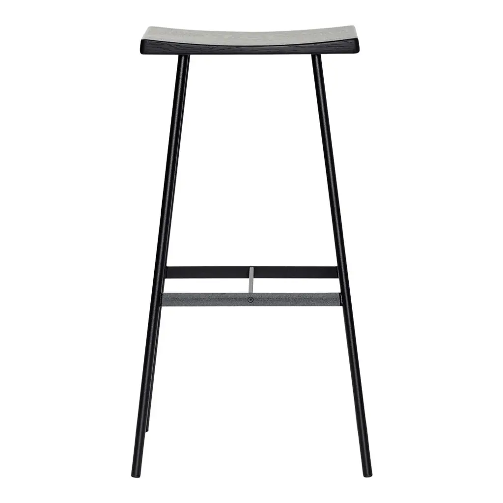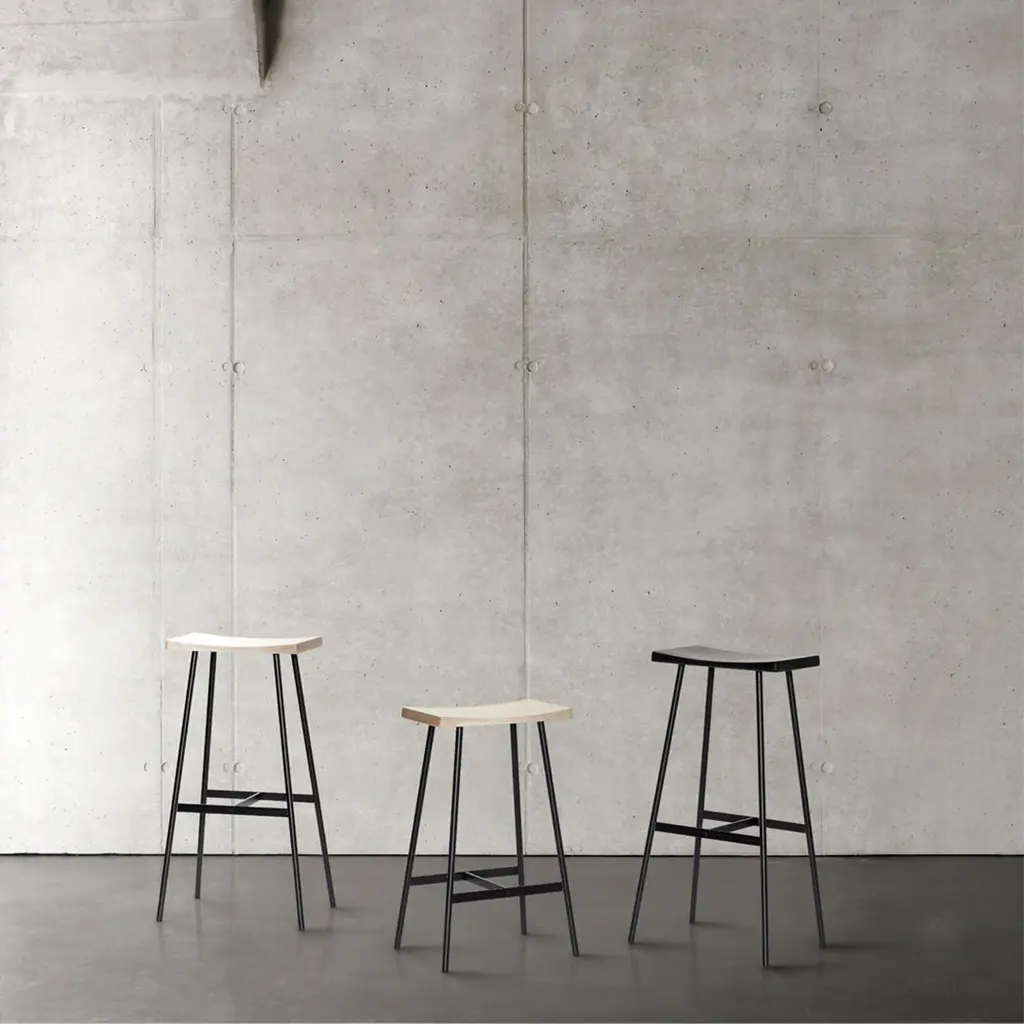 The HC2 bar stool is designed with a graphic expression and is distinguished by slightly angular contours that lend edge and character to the bar stool. The HC2 bar stool is FSC®-certified and produced with a focus on sustainable forestry and environmental considerations. The HC2 bar stool is designed by byKATO in a characteristic combination of a powder-coated steel frame and solid wood, which gives the bar stool a simple and attractive look. The HC2 bar stool features a seat in a choice of oak or black and comes in two different heights. The design is the perfect match for the HT1 high table, which is also designed by byKATO. The chairs are designed to be hung on a table, so the bar stools are lifted from the floor when not in use.