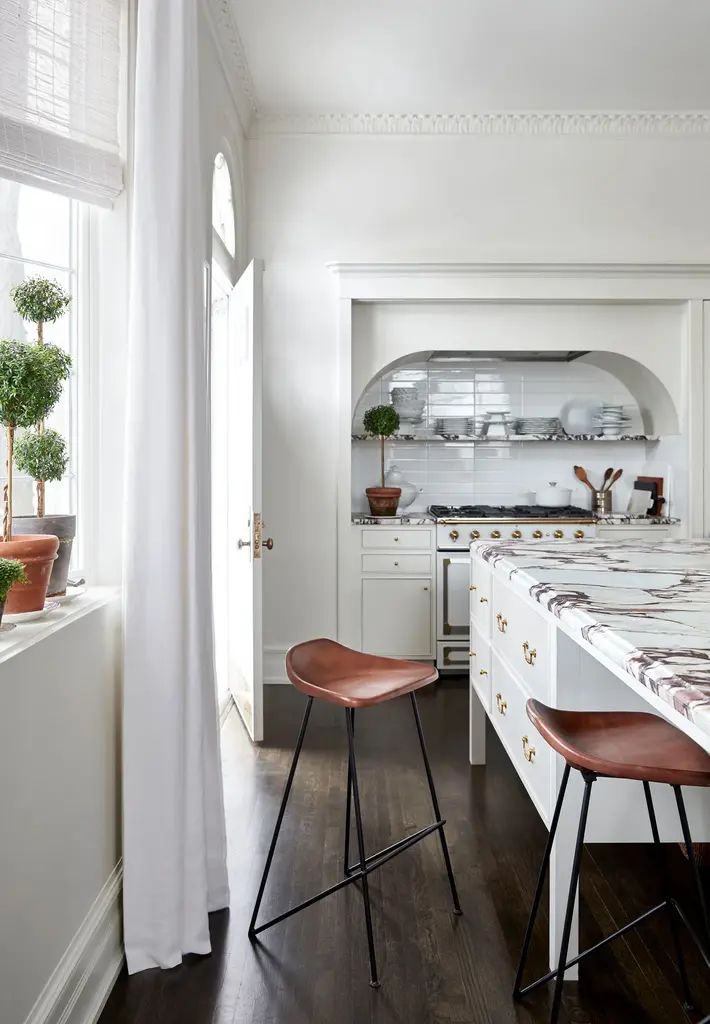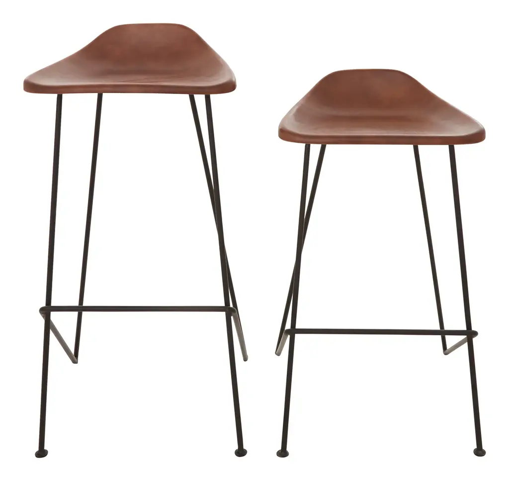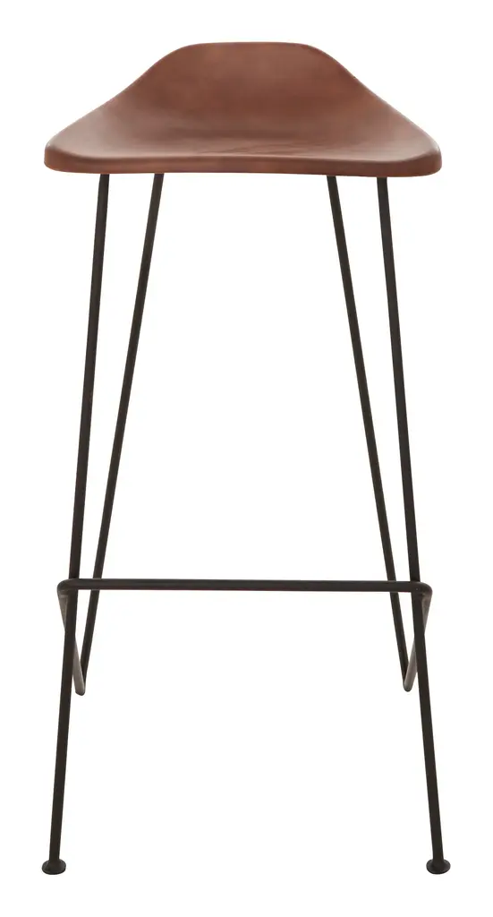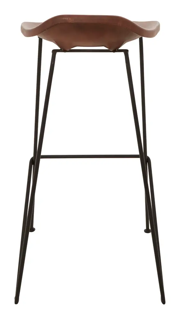 Sidle up to the bar with our sleek Hector Bar Stool. This handsome seat pairs warm brown leather with a slim, angular iron frame for a rustic-modern feel that we can’t get enough of. Although minimal in design, it still sits comfortably thanks to a perfectly placed foot bar, a super low, sloping back rest and a slightly curved seat that nicely supports the body. A natural in almost any style or setting, we love Hector pulled up to a home bar or kitchen island counter. •brown leather•iron Dimensions •17"W x 14.5"D x 33.5"H•seat width: 16.75"•seat depth: 12.75"•seat height: 30.5"•seat to footrest height: 18.25"