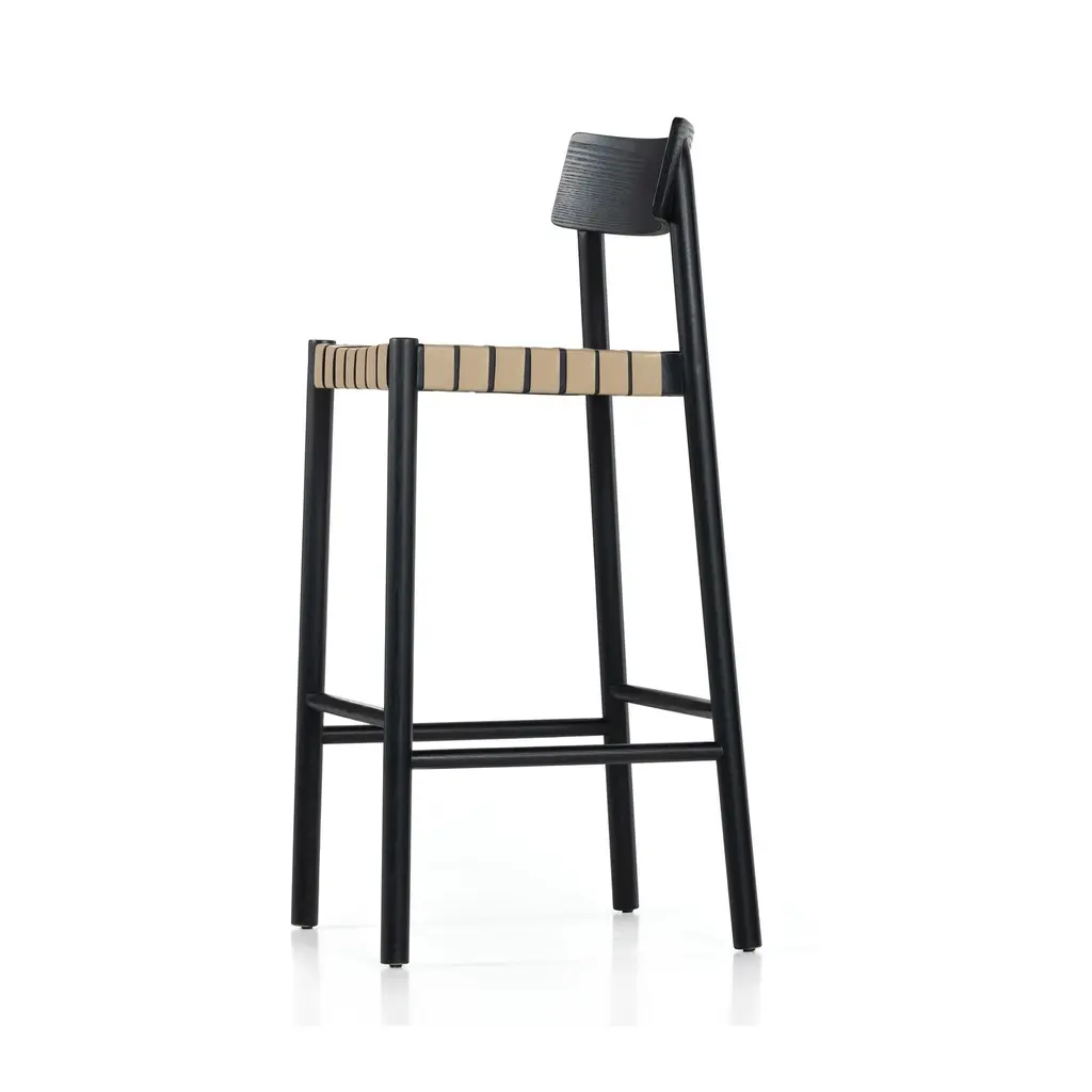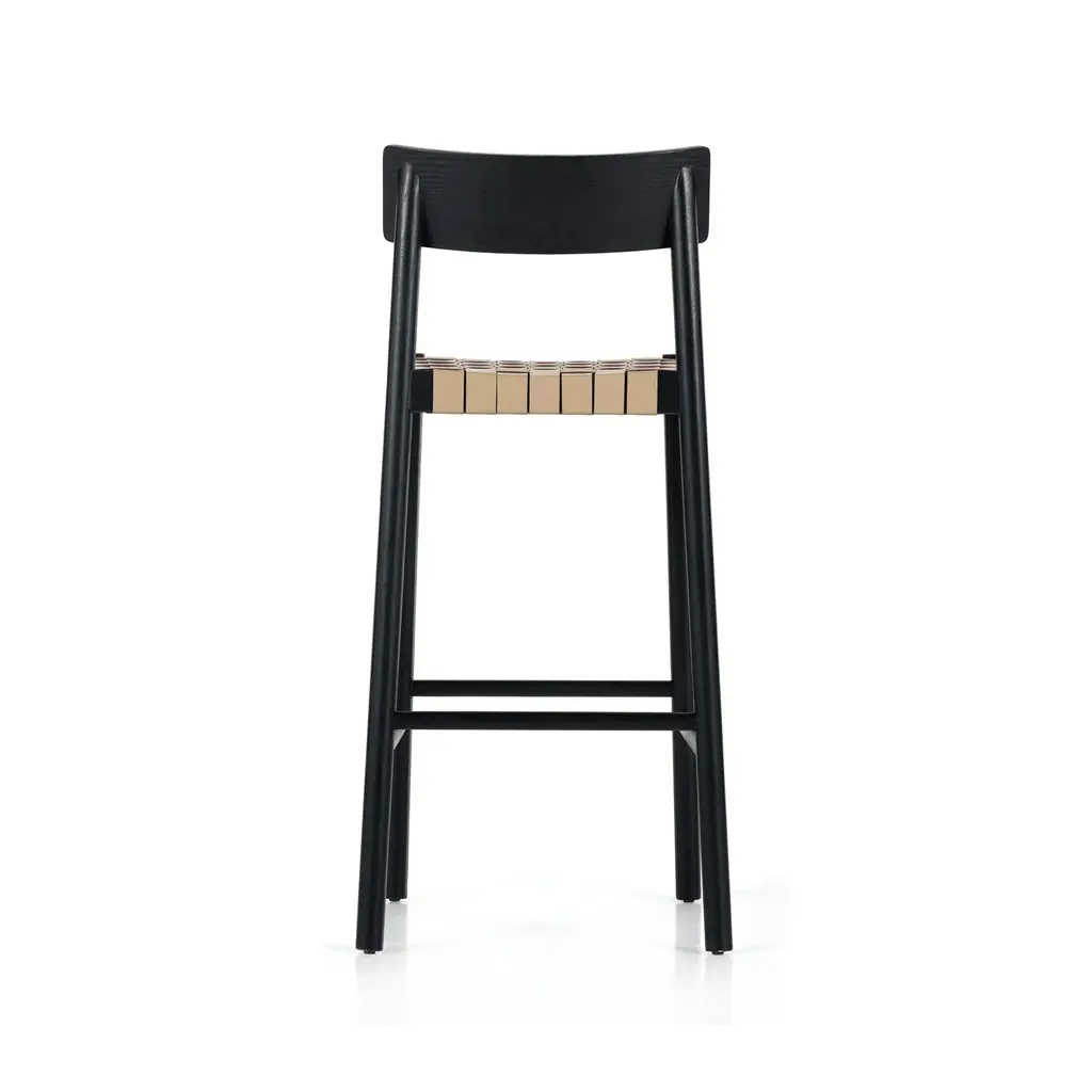 Almond leather and black-finished ash fuse to craft a slim, stylish silhouette. A classic basketweave seat pattern complements the simple lines of this bar stool's streamlined frame. The Heisler collection also includes a counter stool (sold separately). In Stock Early March 2026 Woven leather seat This image is for illustrative purposes only. The colors shown are accurate within the constraints of lighting, photography, and the color accuracy of your screen.