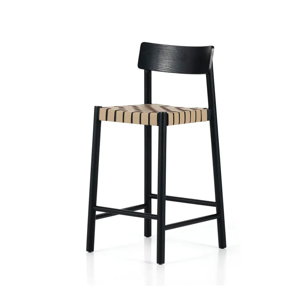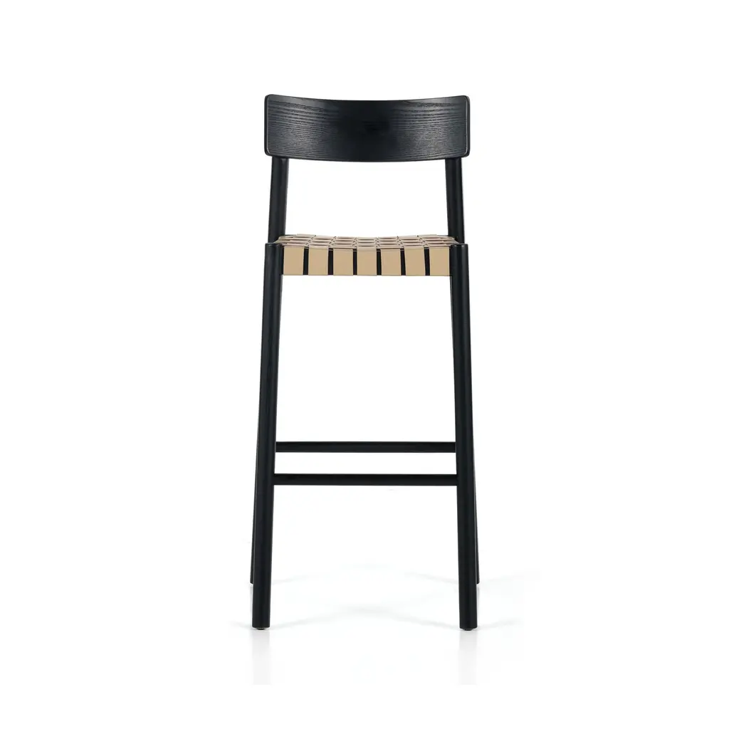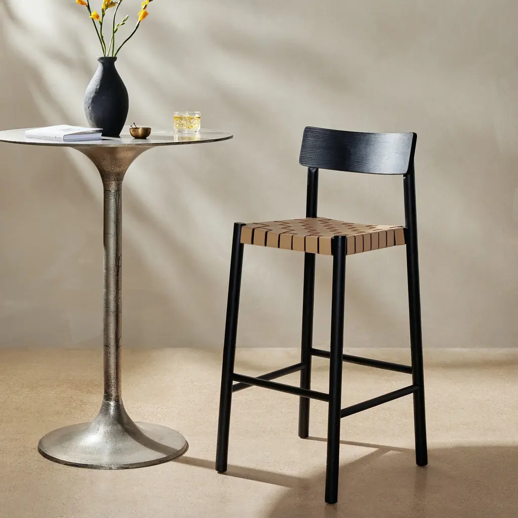 Almond leather and black-finished ash fuse to craft a slim, stylish silhouette. A classic basketweave seat pattern complements the simple lines of this bar stool's streamlined frame. The Heisler collection also includes a counter stool (sold separately). In Stock Early March 2026 Woven leather seat This image is for illustrative purposes only. The colors shown are accurate within the constraints of lighting, photography, and the color accuracy of your screen.