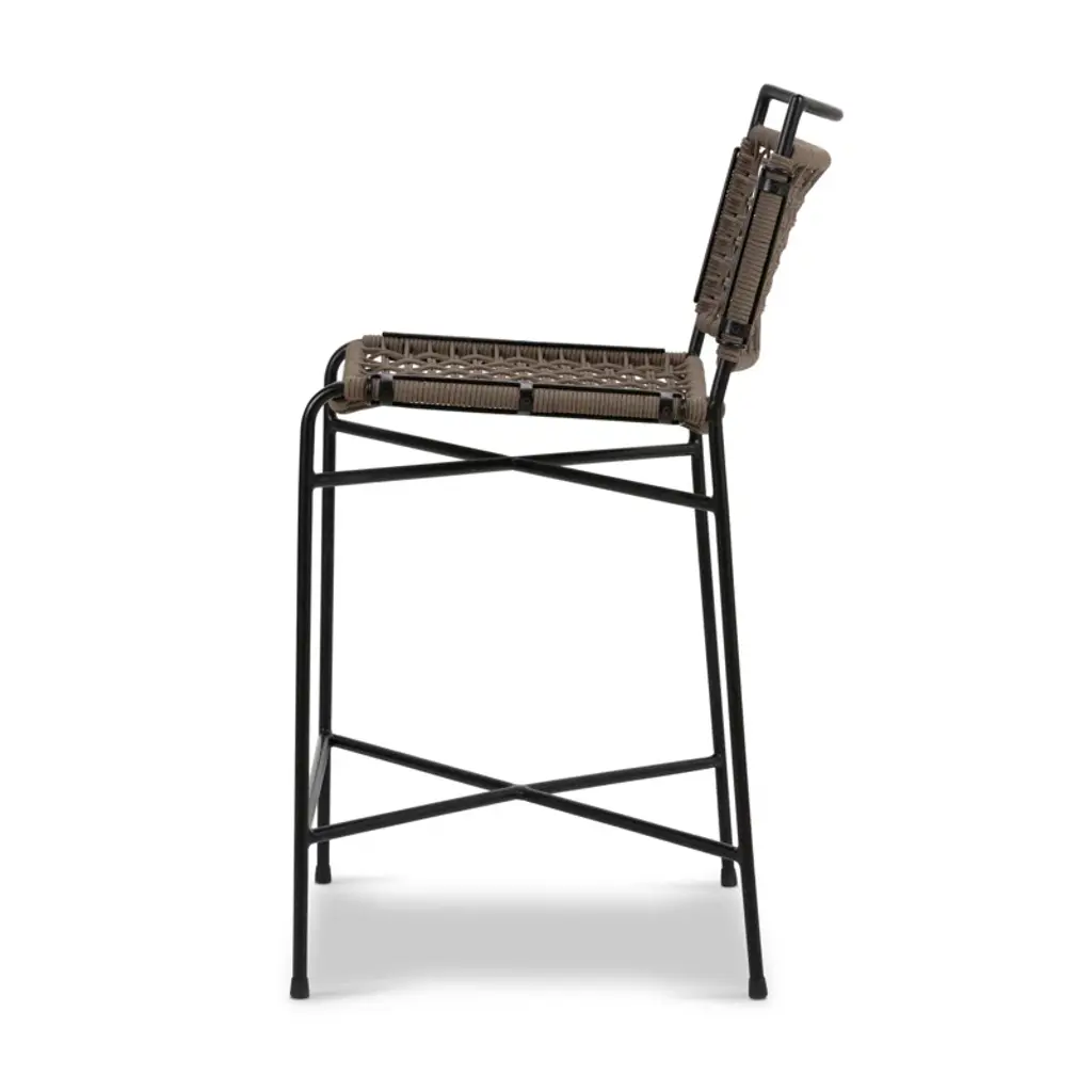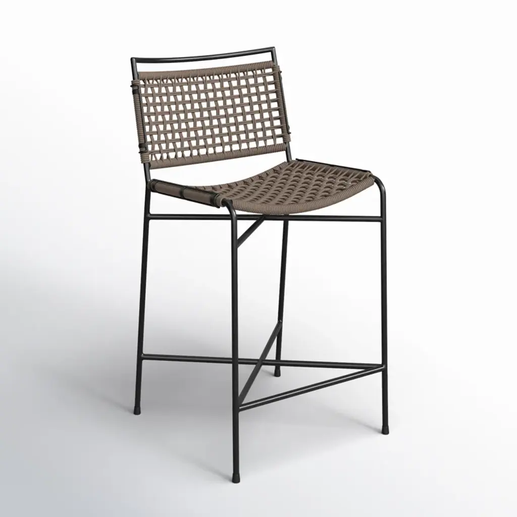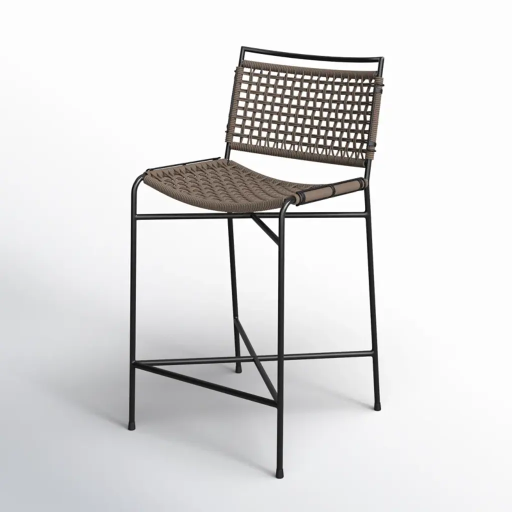 Slim lines and mixed materials combine in this outdoor stool - woven rope detailing forms a sling-style seat and back, accented by iron framing. Cover or store indoors during inclement weather and when not in use.