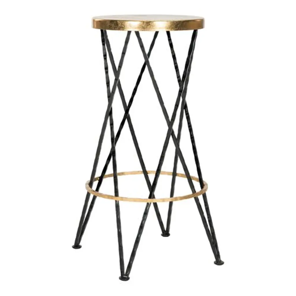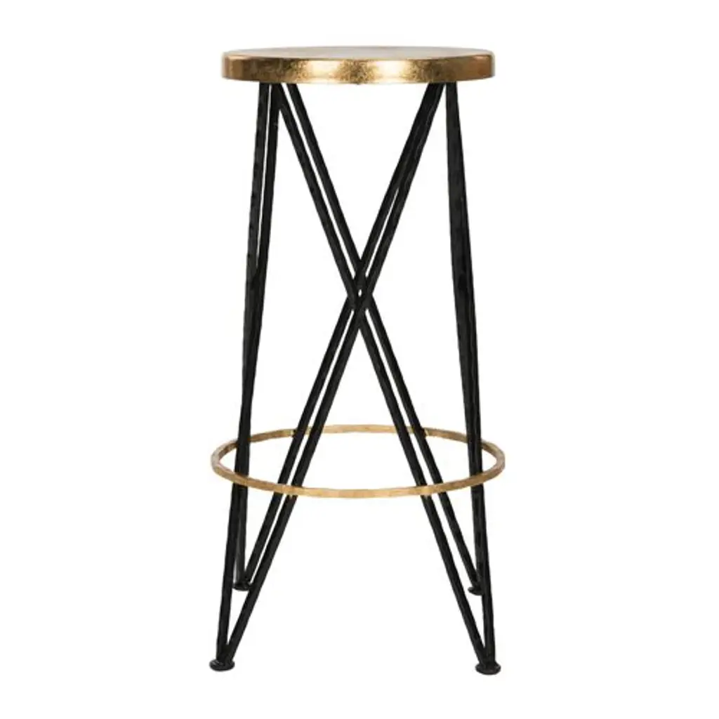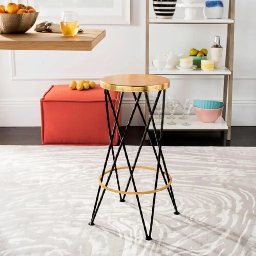 Beautifully crafted of iron, this barstool feels chic and modern with its black hairpin legs and stunning goldtone seat.