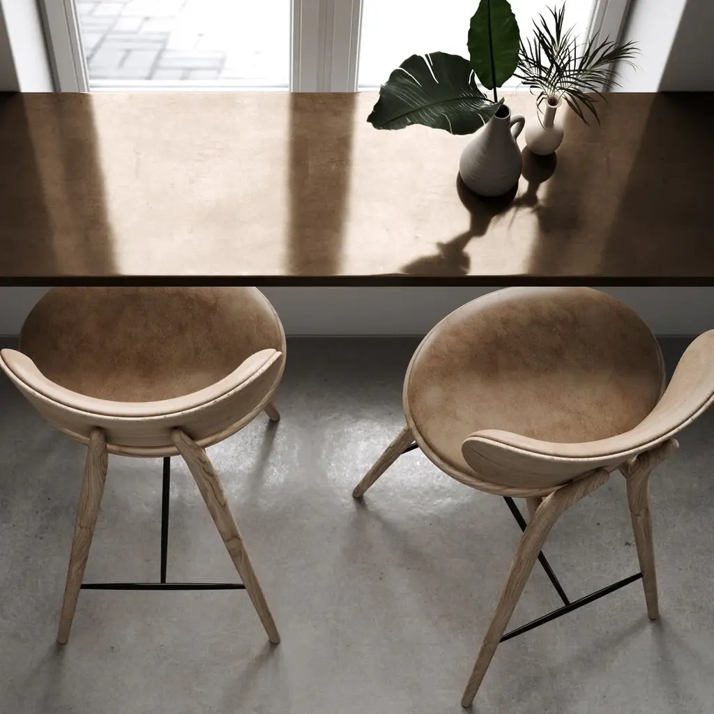 Space Copenhagen designed the High Stool with a new backrest hence the name High Stool Backrest which builds on High Stool's beautifully fluid, sculptural and archetypal character, adding a generously rounded backrest for a heightened sense of comfort. The backrest itself is upholstered in soft durable leather and is fully supportive and comfortable so that it outweighs the need for armrests. When designing High Stool Backrest made from sustainably sourced wood, Space Copenhagen explored classic, simple and sculptural motifs. The collection is available in solid oak or beech wood with a backrest steam bent in veneer. Perfect for both residential and hospitality use. The wood is sustainably sourced from well-managed forests, honouring the UN Sustainable Development Goals of protecting “Life on Landâ€� (SDGs 15) and “Responsible Consumption and Productionâ€� (SDGs 12) while supporting “Partnership for the Goalsâ€� (SDGs 17).