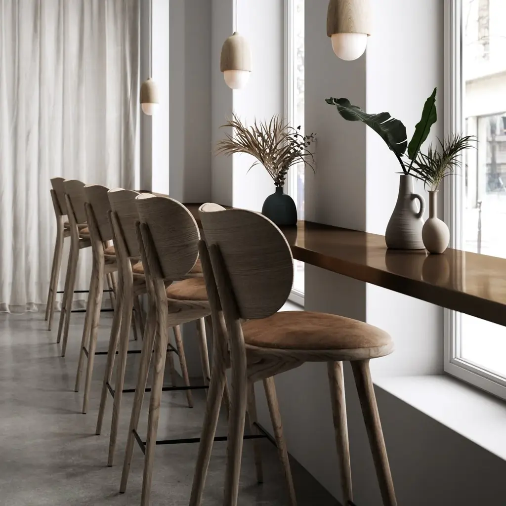 Space Copenhagen designed the High Stool with a new backrest hence the name High Stool Backrest which builds on High Stool's beautifully fluid, sculptural and archetypal character, adding a generously rounded backrest for a heightened sense of comfort. The backrest itself is upholstered in soft durable leather and is fully supportive and comfortable so that it outweighs the need for armrests. When designing High Stool Backrest made from sustainably sourced wood, Space Copenhagen explored classic, simple and sculptural motifs. The collection is available in solid oak or beech wood with a backrest steam bent in veneer. Perfect for both residential and hospitality use. The wood is sustainably sourced from well-managed forests, honouring the UN Sustainable Development Goals of protecting “Life on Landâ€� (SDGs 15) and “Responsible Consumption and Productionâ€� (SDGs 12) while supporting “Partnership for the Goalsâ€� (SDGs 17).