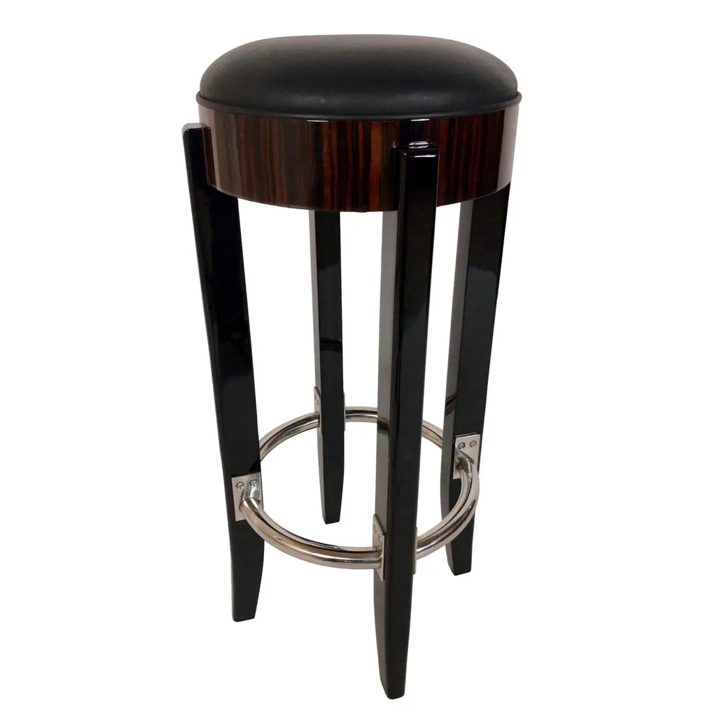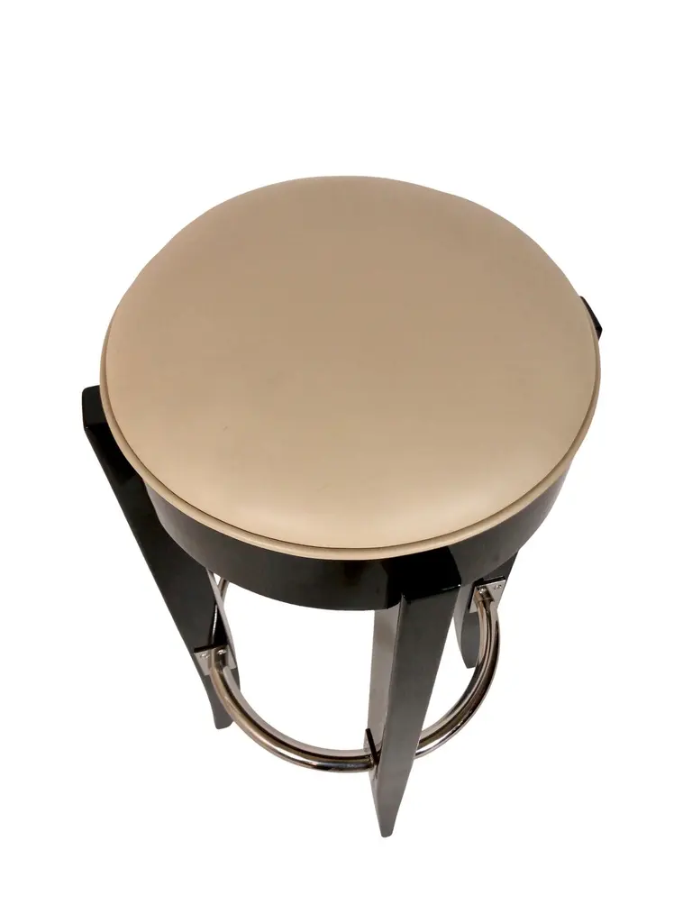 High Gloss Black Piano Lacquer Barstool In The Style Of French Art Deco